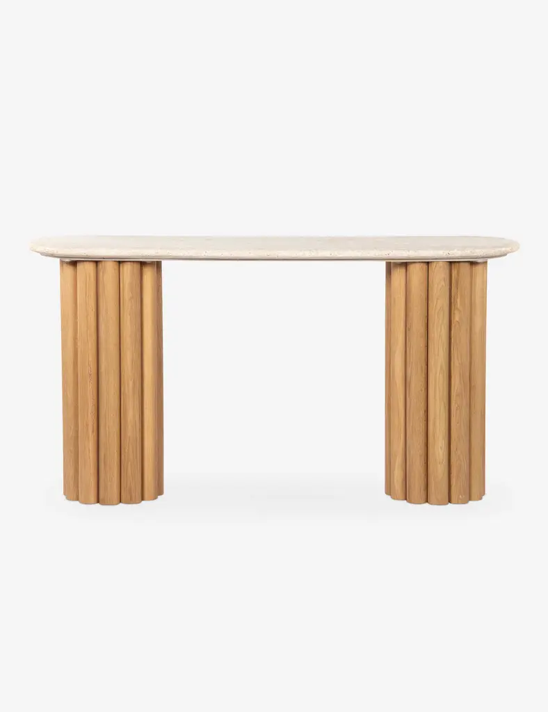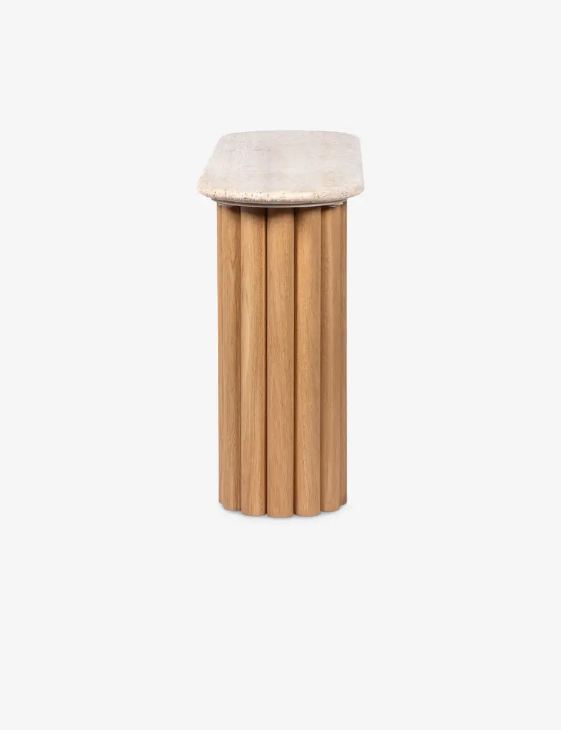 The Bondel console table creates an elegant impact with its modern line and light tones. There is a grounding warmth in its stone and oak construction, offering natural textures in balance. We love this piece styled as a living room or entryway table to elevate a minimalist edit.