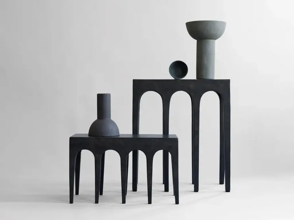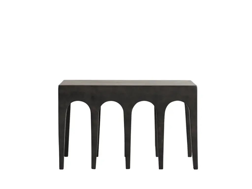Like a piece of architecture gone astray, the BOW console table draws parallels to the old aqueducts from the Roman Empire and classic architectural geometry. Repetition of arches create a beautiful, sleek, yet somewhat box silhouette and the long legs make it seem narrow and light even though the character is anything but insignificant. The table is cast in lightweight fiber concrete to create a unique textured surface and increase mobility. It is hand painted with multiple layers of paint, creating a strong and resistant surface.Material: 100% Fiber Concrete