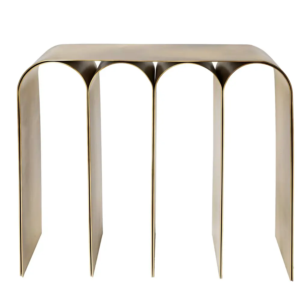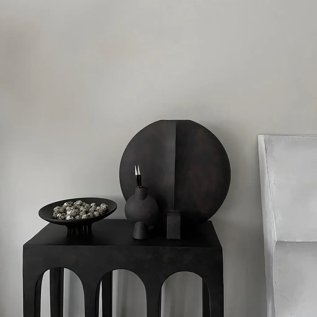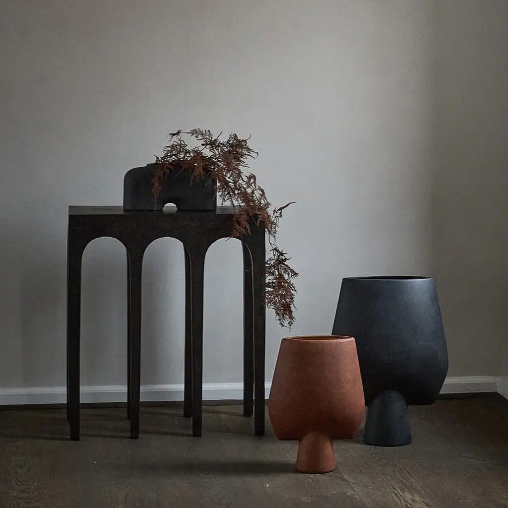 Like a piece of architecture gone astray, the Bow console table draws parallels to the old aqueducts from the Roman Empire and classic architectural geometry. Repetition of arches create a beautiful, sleek, yet somewhat box silhouette and the long legs make it seem narrow and light even though the character is anything but insignificant. The table is cast in lightweight fiber concrete to create a unique textured surface and increase mobility. It is hand painted with multiple layers of paint, creating a strong and resistant surface. Designed by Kristian Sofus Hansen; Tommy Hyldahl.
