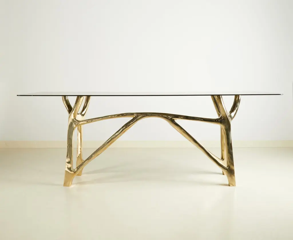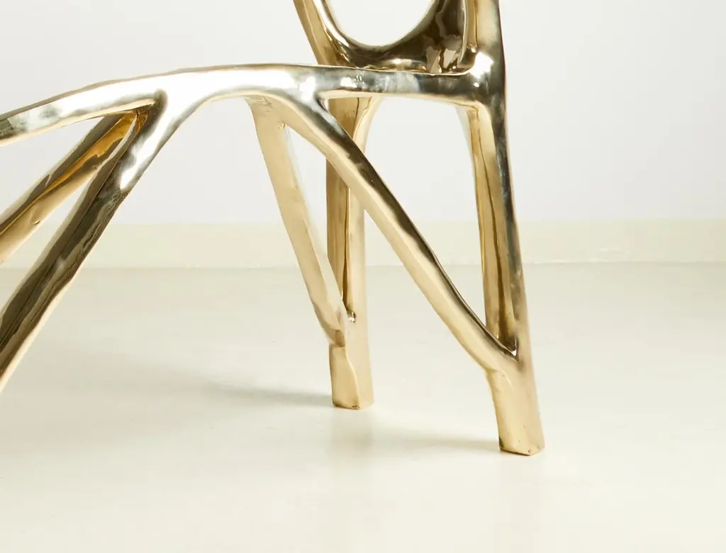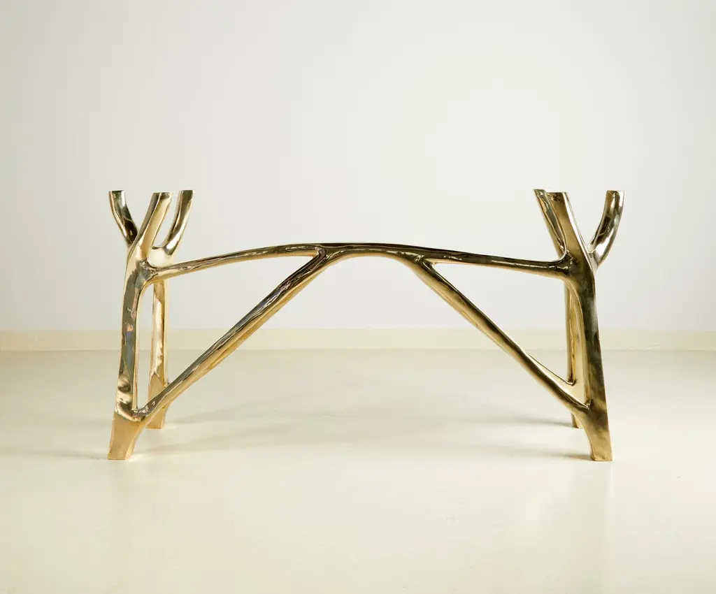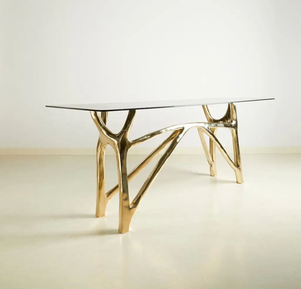 Brass Sculpted Console Table, Golden Symmetry, Misaya