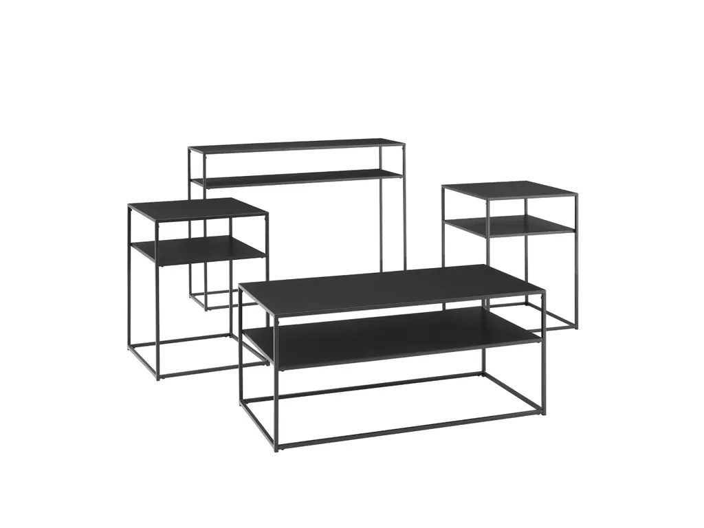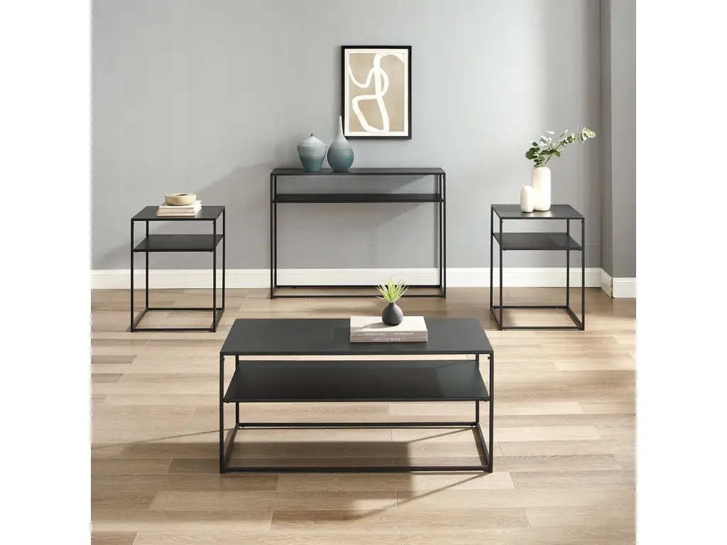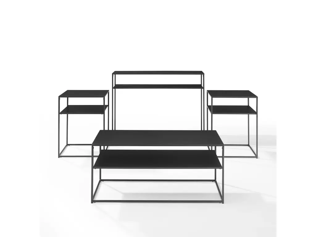 Simple and streamlined, the braxton four-piece coffee table set is an ideal addition to your living room. With slim frames and sturdy steel construction, each table blends seamlessly with your home decor. Featuring a coffee table, two end tables, and a console table, this set offers display space and storage without overwhelming your room.