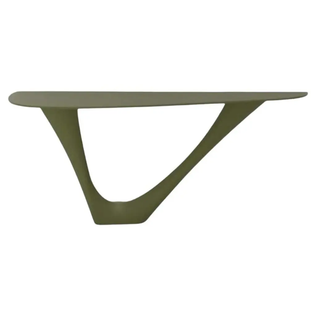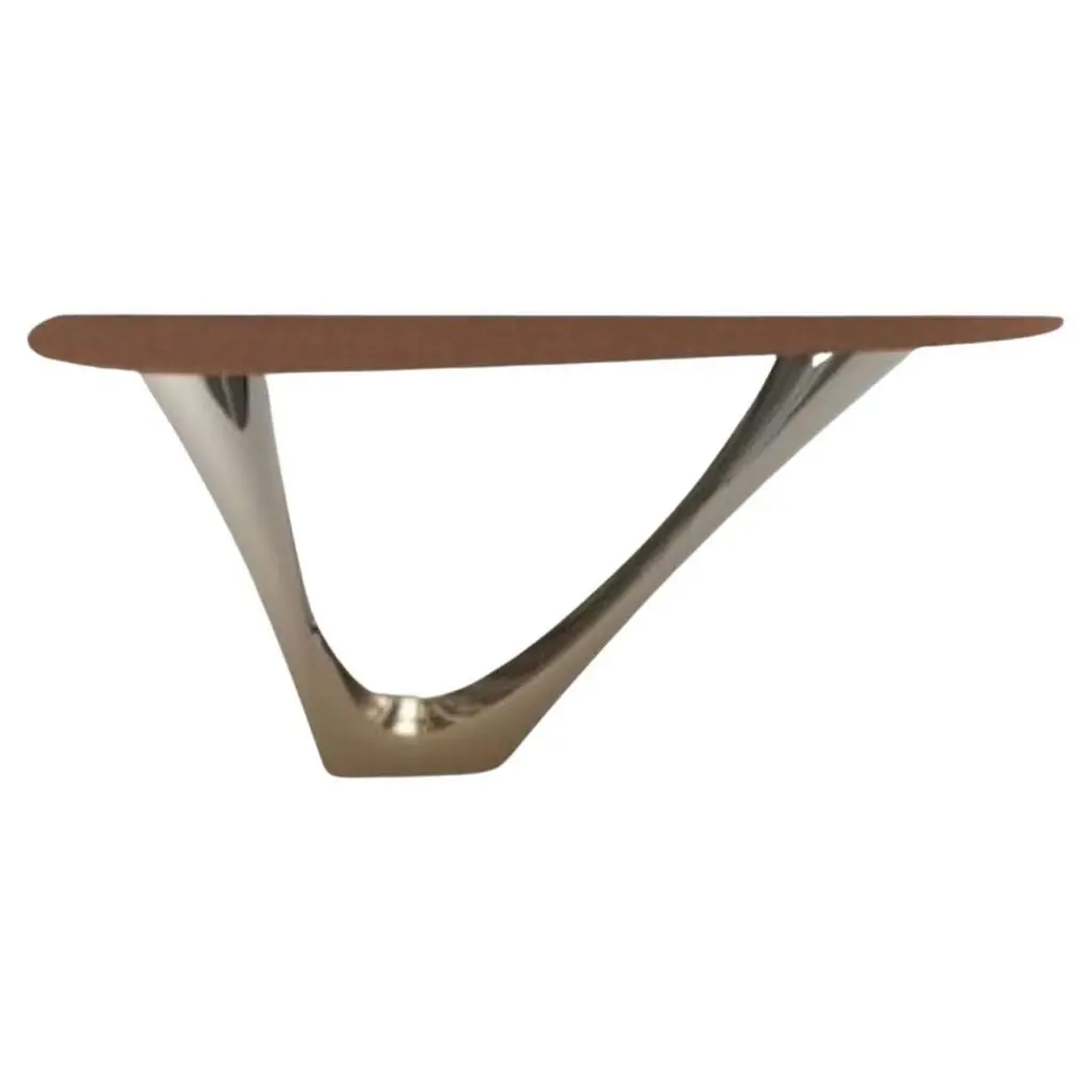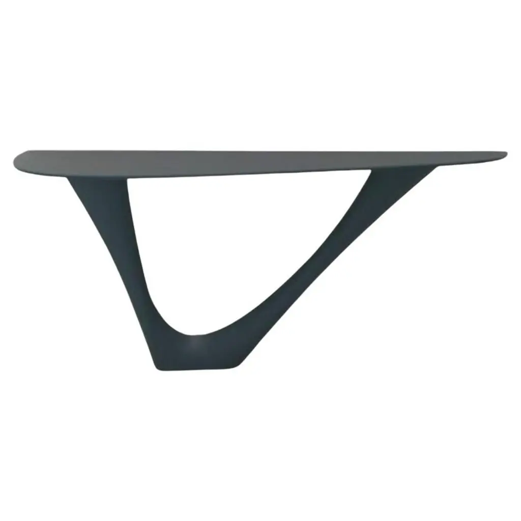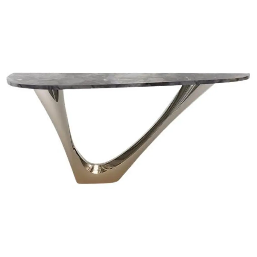 Brown G-Console mono steel base with concrete top by ZietaDimensions: D 43 x W 159 x H 75 cm Material: Concrete, carbon steel.Also available in different colors and dimensions.G-Console is another bionic object in our collection. Created for smaller spaces, it gives another possibility in interior planning and at the same time preserves the unique shape of the original G-Table. Both objects were made for enthusiasts of bionic forms. Made with FiDU technology, it reminds of vines or tree roots. Nature symbolizes a constant changeability and harmony that comes out of it. A diverse structure refers to both natural forms and processes. G-Console comes in two versions – Mono and Duo.About Zieta: Zietas main goal is to deliver uniqueness and customization in design and construction while keeping the production, transport, and warehousing innovatively efficient.This is how they imagine the future world: Light, durable structures of customized applications produced on demand out of one-of-a-kind parts, yet efficiently.They use a computer-controlled production process. Customized pattern, customized form, customized function, one-of-a-kind product, and outstanding precision are what they deliver.You will find all of this philosophy reflected in the products. They research, they discover new possibilities, they play with forms and they deliver a beautiful, innovative, surprising outcome to people who love the design and who care about design development.They believe their work is a valuable contribution to the world of design not only by the unique beauty of the forms but most of all by opening ultra-innovative opportunities of forming and new paths for the world of the future.