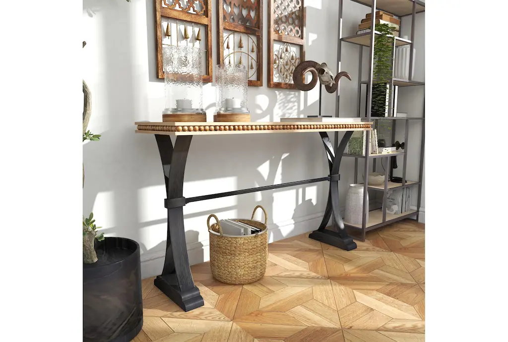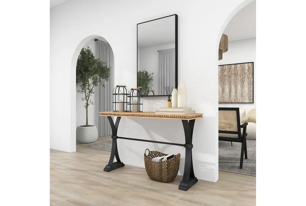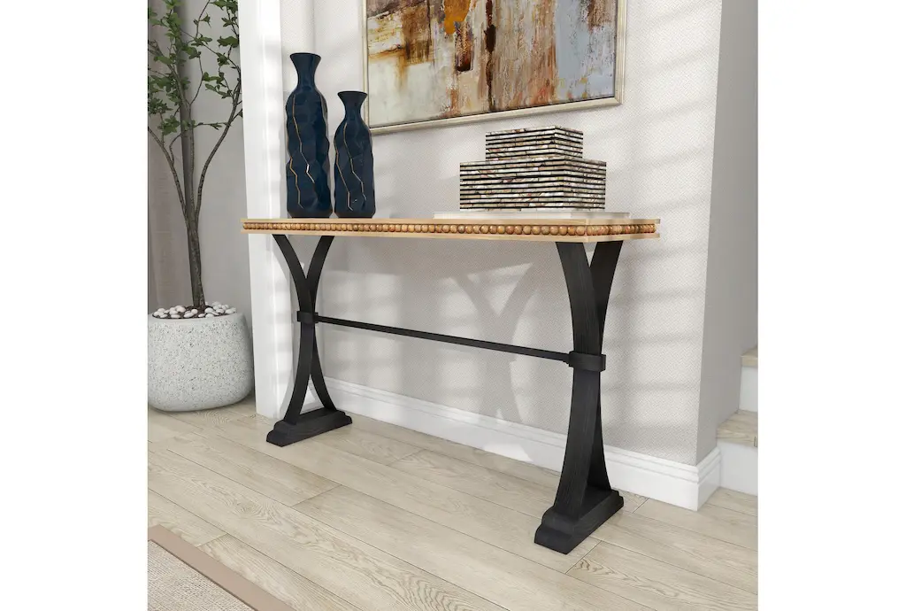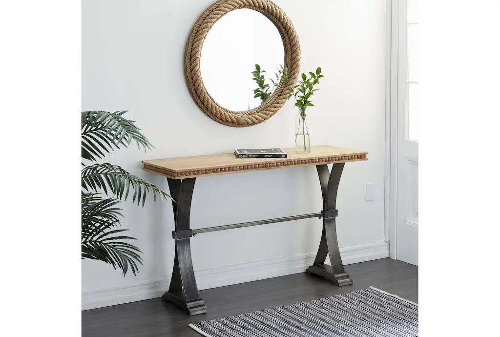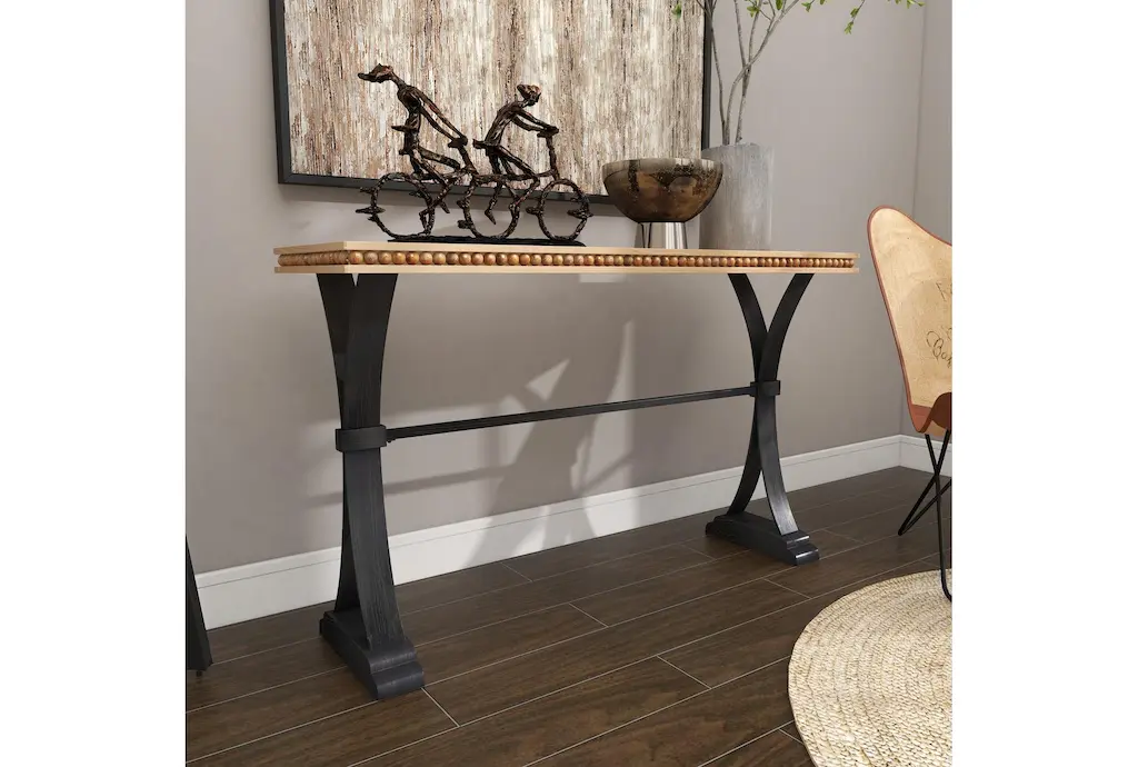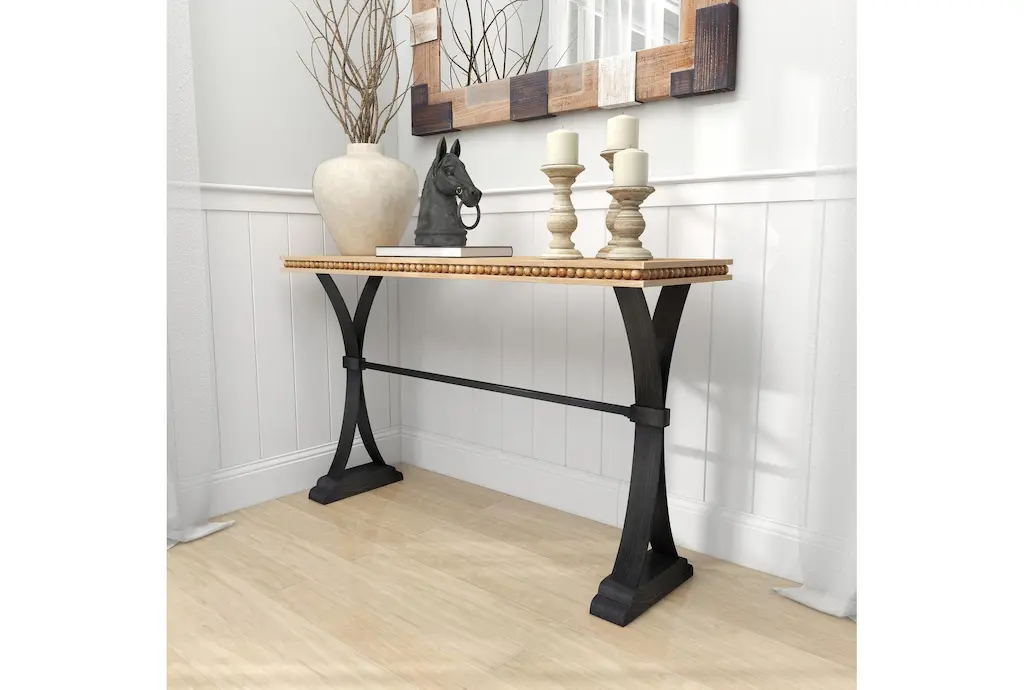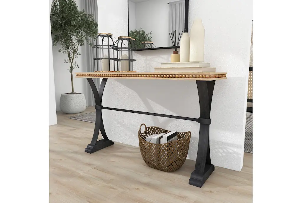 Bring a finishing touch to your home with an inviting appeal with this console table. A sturdy and long lasting construction for a years of enjoyment. Upgrade your rustic home with this long console table that will complement a large round wooden mirror or landscape canvas art. This item ships in 1 carton. Suitable for indoor use only. This item ships fully assembled in one piece. Maximum weight limit is 100 lbs. This is a single black colored entryway table. Industrial style.