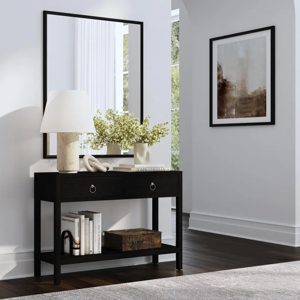 Butler Specialty Company Lark 44 in. W Rectangular Wood 2 Drawer Console Table with Lower Open Shelf, Black