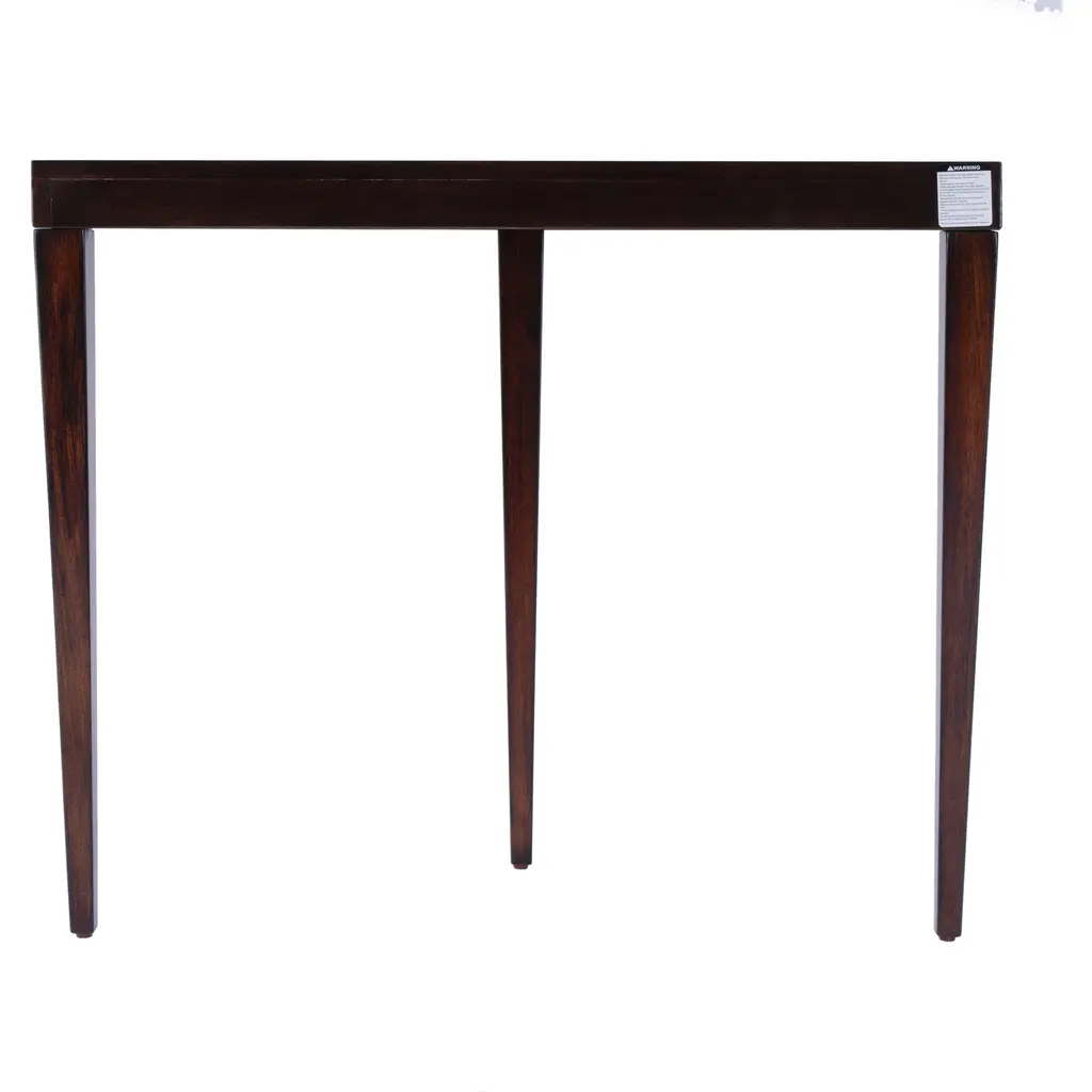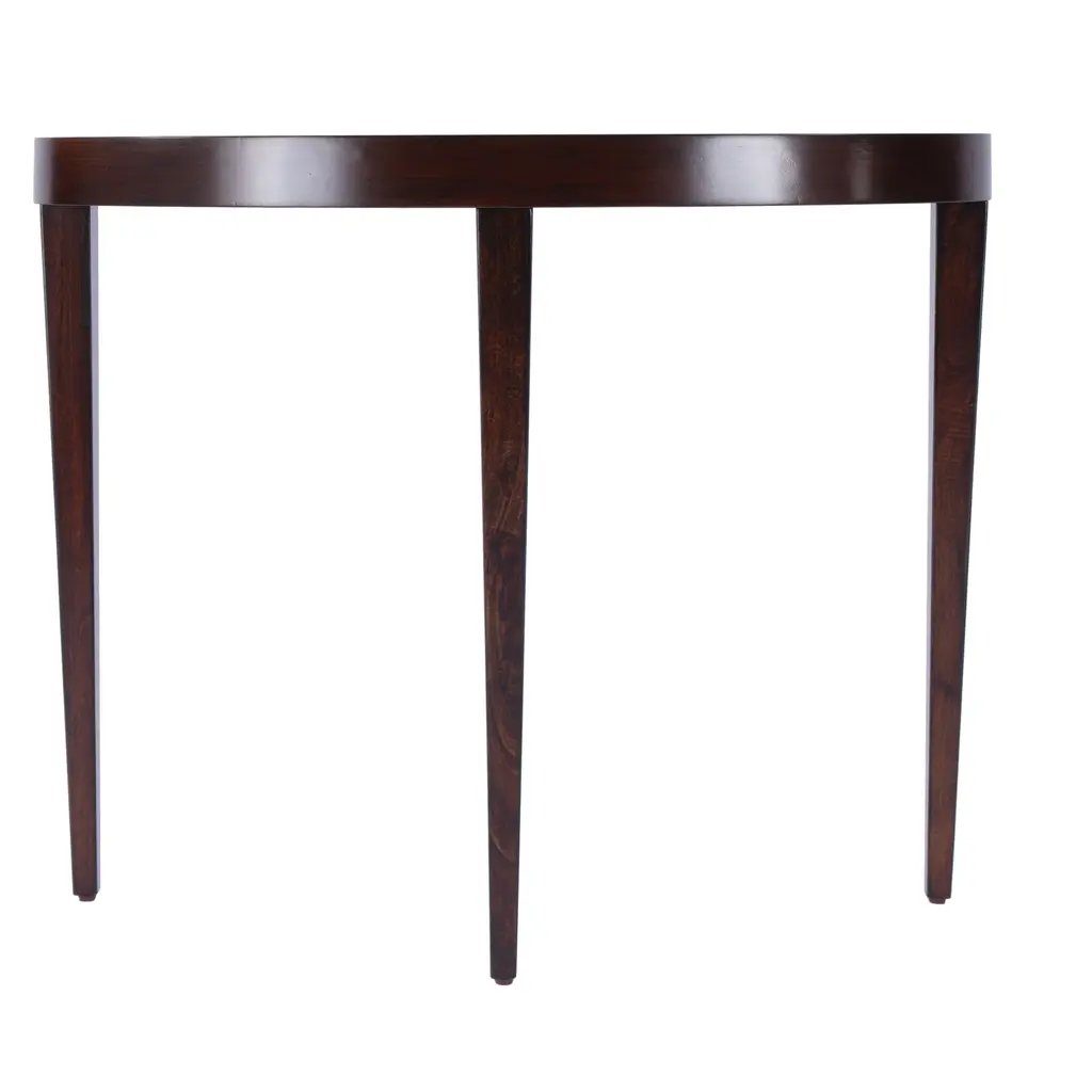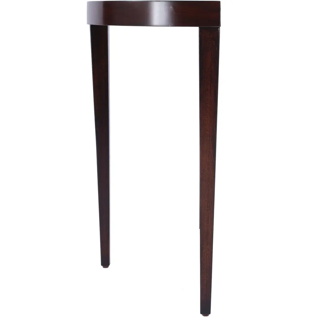 This three-legged Butler Specialty Company Ingrid console table, boasting a stunning dark brown finish, brings an elegant signature style to any room