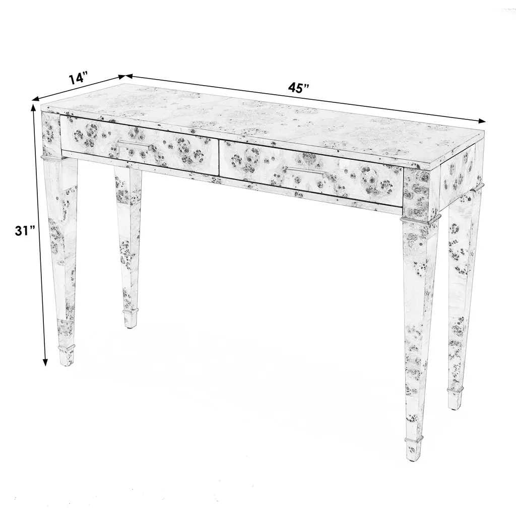 Butler Specialty Company Kai 2 Drawer 45" Burl Wood Console Table, Medium Brown