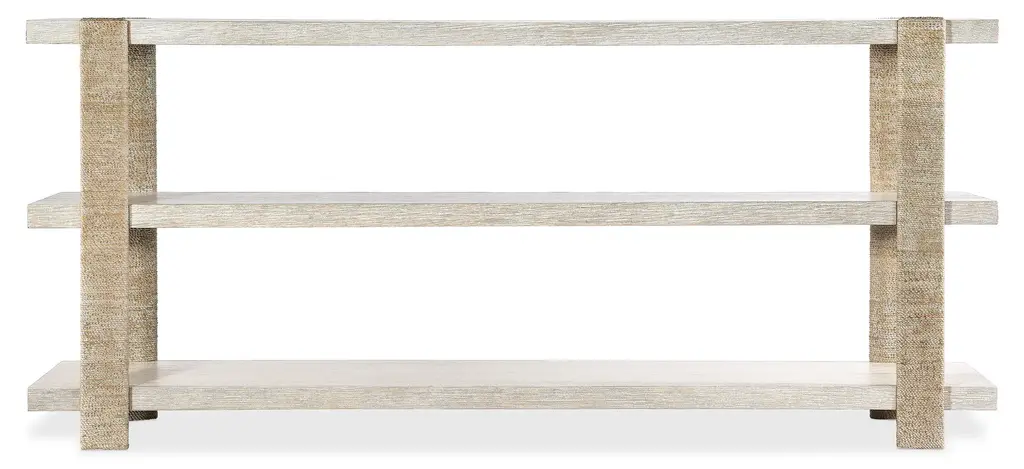 530206-WAA The Bywater three tier console uses a patchwork of acacia wood for the tier tops and looks very much like an old parquet floor. This console works marvelously well in living rooms and maybe even a garden room. It's really very attractive!