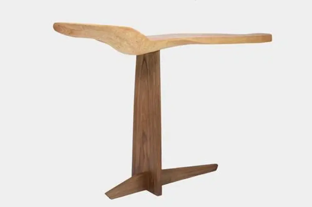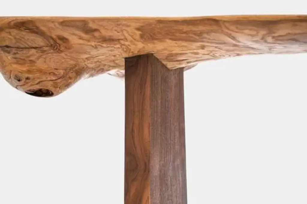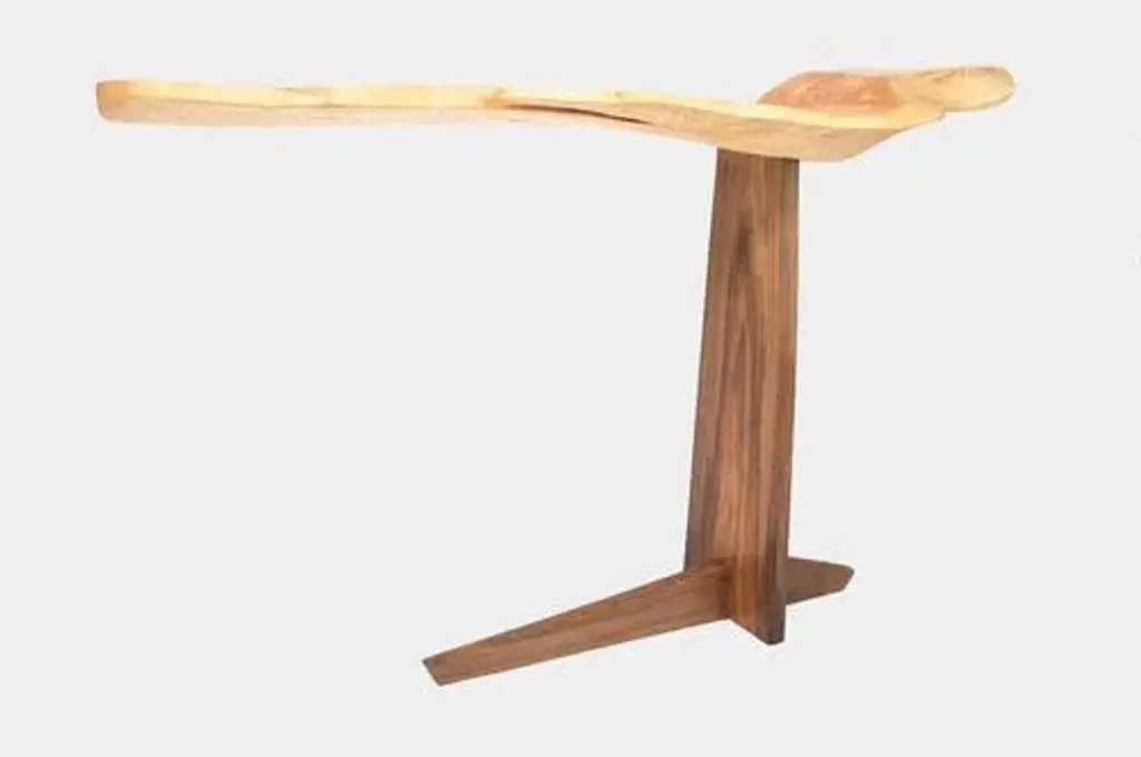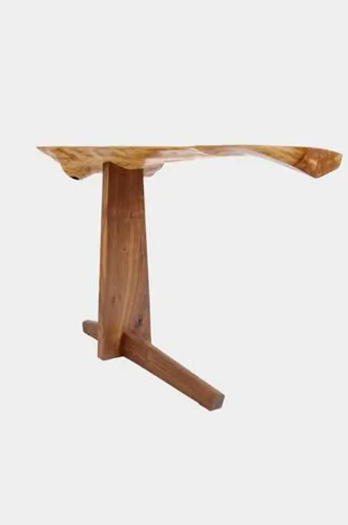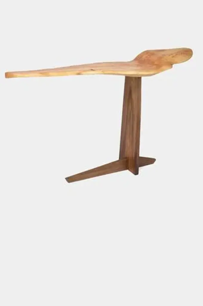 C1104 console table in beech and walnut wood by jörg pietschmann dimensions: d 36 x w 142 x h 85 cm. Materials: beech and walnut. In pietschmann’s sculptures, trees that for centuries were part of a landscape and founded in primordial forces tell stories inscribed in the memory of their fibers. The forms jörg pietschmann pares from ancient trees are extensive and astonish with their physical presence, a combination of elegance and primeval nature. Pietschmann’s sculptures are monuments to the trees from which they derive. Being endowed with the ruggedness of primeval matter gives them a veritable vitality: figures that appear to have grown into their sculptural form of their own accord. But pietschmann’s tangibly present bodies have undergone a considerable degree of metamorphosis. In order to generate these unique tree specimens he examines the tree’s morphology and intrinsic inner map until the courses of its grain, of a curve, knots and cracks concur with his projections. The exploratory process is accompanied by constant modification, giving at the start of each new piece no more than an intimation of the figure that will later emerge. In their completion, pietschmann’s sculptures once more become universal form. Jörg pietschmann`s workshop is situated on the countryside close to hamburg. He works with indigenous timber as oak, lime tree, beech, poplar, olive tree and maple felled by the wind or human hand, together with tropical timber found on his travels. This piece is attributed to the mentioned designer/maker. It has no attribution mark and no official proof of authenticity, however it is well documented in design history. I take full responsibility for any authenticity issues arising from misattribution