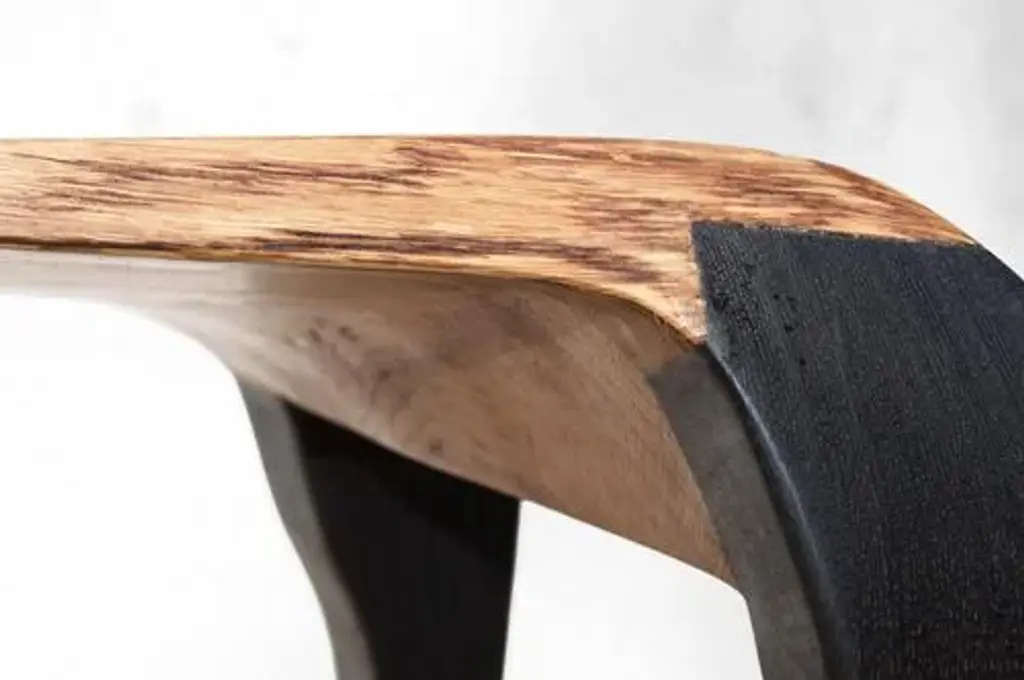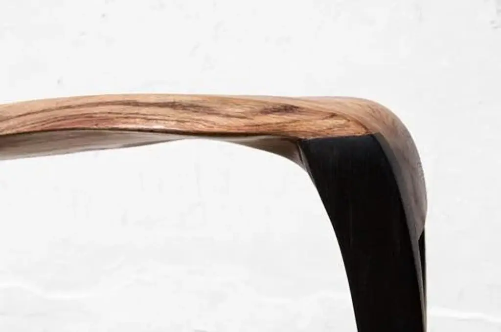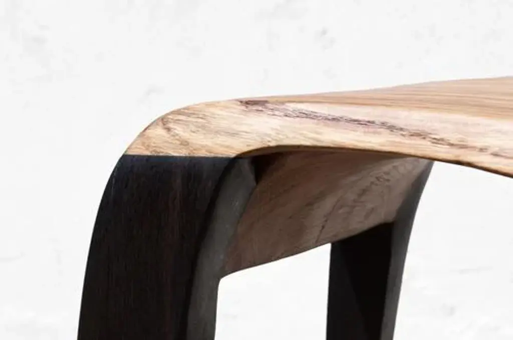 C2332 console table in oak and bog oak wood by jörg pietschmann dimensions: d 42 x w 120 x h 60 cm. Materials: oak and bog oak. In pietschmann’s sculptures, trees that for centuries were part of a landscape and founded in primordial forces tell stories inscribed in the memory of their fibers. The forms jörg pietschmann pares from ancient trees are extensive and astonish with their physical presence, a combination of elegance and primeval nature. Pietschmann’s sculptures are monuments to the trees from which they derive. Being endowed with the ruggedness of primeval matter gives them a veritable vitality: figures that appear to have grown into their sculptural form of their own accord. But pietschmann’s tangibly present bodies have undergone a considerable degree of metamorphosis. In order to generate these unique tree specimens he examines the tree’s morphology and intrinsic inner map until the courses of its grain, of a curve, knots and cracks concur with his projections. The exploratory process is accompanied by constant modification, giving at the start of each new piece no more than an intimation of the figure that will later emerge. In their completion, pietschmann’s sculptures once more become universal form. Jörg pietschmann`s workshop is situated on the countryside close to hamburg. He works with indigenous timber as oak, lime tree, beech, poplar, olive tree and maple felled by the wind or human hand, together with tropical timber found on his travels. This piece is attributed to the mentioned designer/maker. It has no attribution mark and no official proof of authenticity, however it is well documented in design history. I take full responsibility for any authenticity issues arising from misattribution
