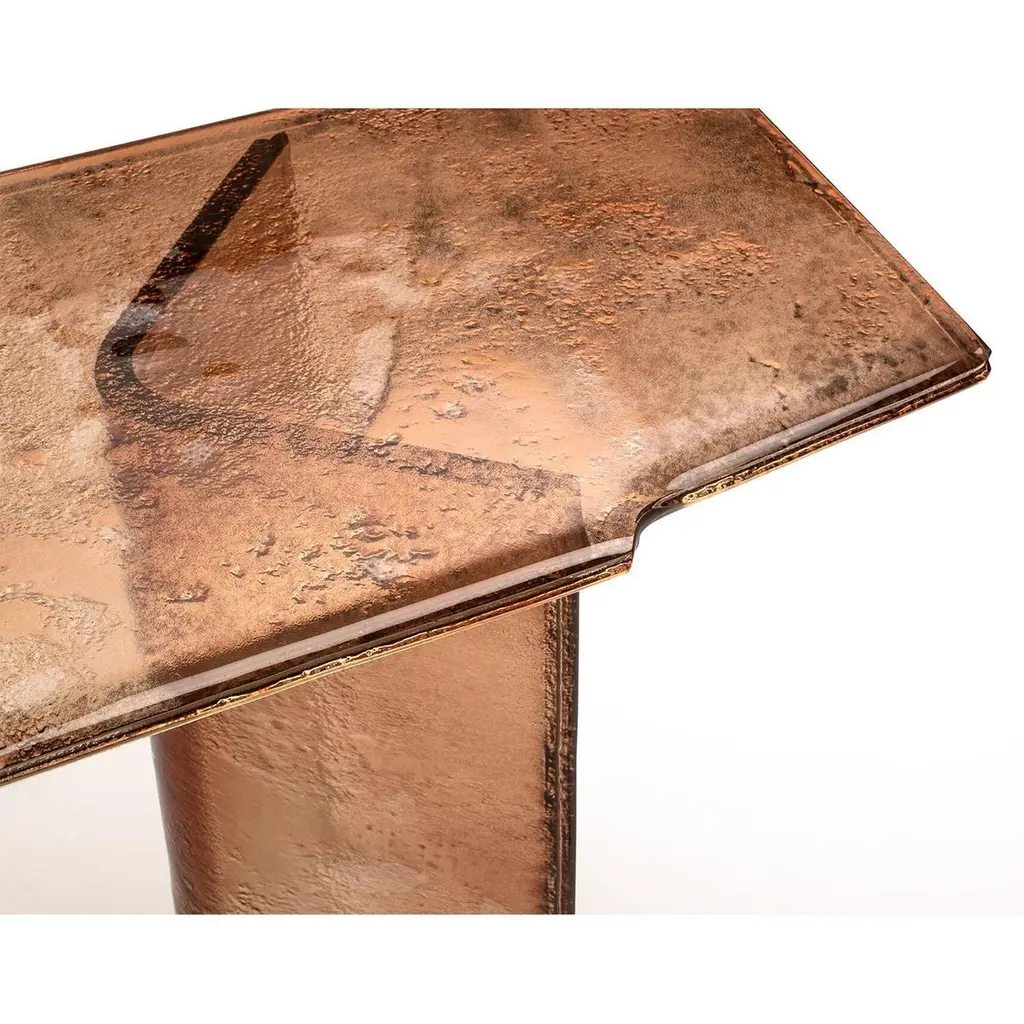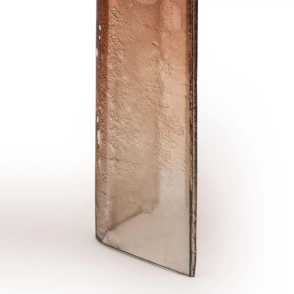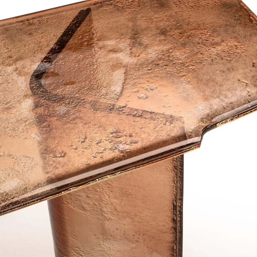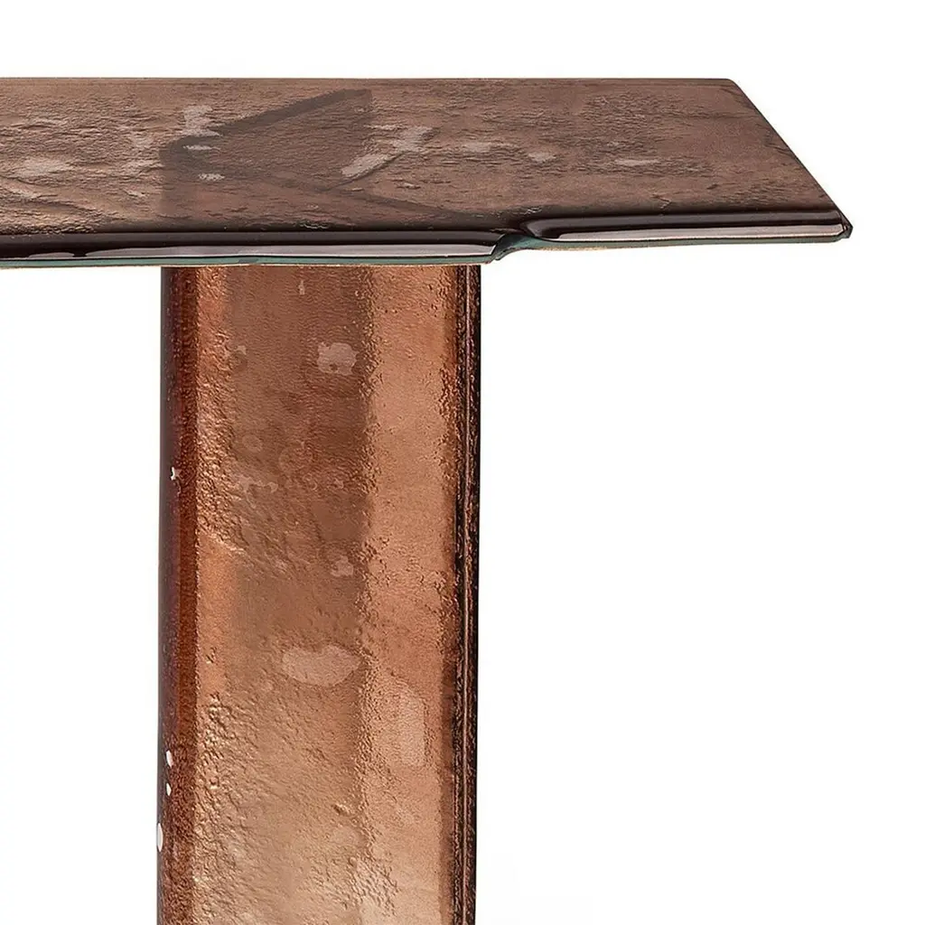 Console Table glass Cagliari with structure in baked glass, top with irregular edges. All theglass parts are varnished in gradation frombronze to clear glass, with partial silvering on the back.
