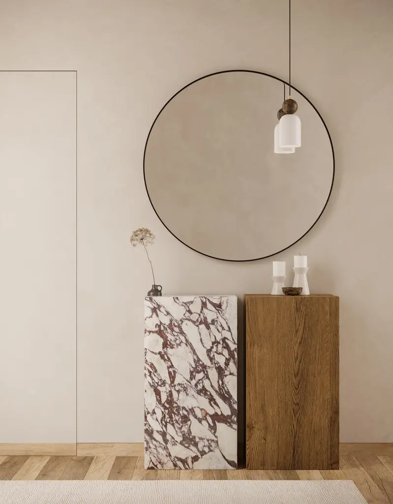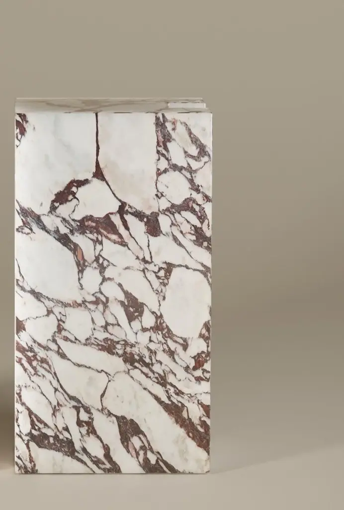 Camo Calacatta Viola Console Table by Un’commonDesigned by Małgorzata Korycka.Dimensions: D 28 x W 50 x H 85 cm.Materials: Calacatta Viola marble.Available in different oak finishes: raw, smoky, dark, and graphite. Also available in marble. Please contact us.CAMO is a piece of furniture for true lovers of minimalism and noble materials. It is characterized by a simple design with a lowered shelf on the side edge of the furniture. The minimalism of the console draws attention to the material's beauty and the workmanship's precision. Ideally suited to the hall with a mirror, living room, or bedroom. It is an auxiliary piece of furniture that can also become a piece of jewelry for the interior. The console is also available in wood.Our Polish workshop designs and hand-makes furniture from marble and steel. Our furniture should not only be well-designed – it should be a feast for the senses. Nothing can produce this effect quite as good as marble.It is a beautiful, refined, natural material used for centuries in architecture, art, and everyday life. There are many different stone quarries, offering different types and colors of marble. However, because it is a natural material formed in a very complex process, it is virtually impossible to extract two identical pieces of stone. In our opinion, in a world ruled by plastic and mass production, this thrill of surprise is a bit of genuine luxury, reserved only for natural materials and their enthusiasts.Thanks to the physical properties of stone and precise workmanship, Un’common furniture is built to last. Over time, a natural patina may form on the surface, adding extra charm to your beautiful and refined furniture, which – if treated well – will reward you every day. Nothing can beat the taste of coffee when you drink it at a marble table.