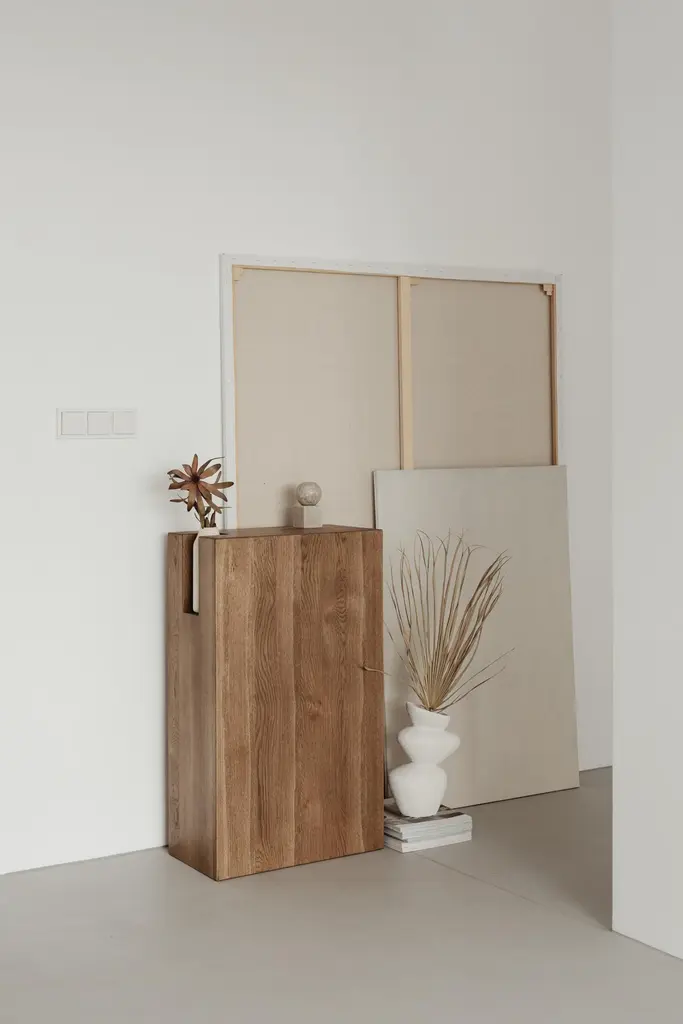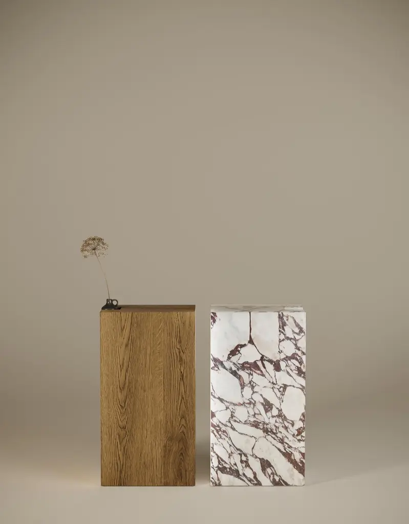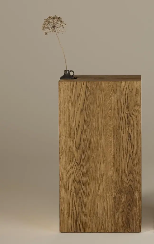 Camo Wooden Console Table by Un’commonDesigned by Małgorzata Korycka.Dimensions: D 28 x W 50 x H 85 cm.Materials: Oak.Available in different oak finishes: raw, smoky, dark, and graphite. Also available in marble. Please contact us.CAMO is a piece of furniture for true lovers of minimalism and noble materials. It is characterized by a simple design with a lowered shelf on the side edge of the furniture. The minimalism of the console draws attention to the material's beauty and the workmanship's precision. Ideally suited to the hall with a mirror, living room, or bedroom. It is an auxiliary piece of furniture that can also become a piece of jewelry for the interior. The console is also available in marble.Our Polish workshop designs and hand-makes furniture from marble and steel. Our furniture should not only be well-designed – it should be a feast for the senses. Nothing can produce this effect quite as good as marble.It is a beautiful, refined, natural material used for centuries in architecture, art, and everyday life. There are many different stone quarries, offering different types and colors of marble. However, because it is a natural material formed in a very complex process, it is virtually impossible to extract two identical pieces of stone. In our opinion, in a world ruled by plastic and mass production, this thrill of surprise is a bit of genuine luxury, reserved only for natural materials and their enthusiasts.Thanks to the physical properties of stone and precise workmanship, Un’common furniture is built to last. Over time, a natural patina may form on the surface, adding extra charm to your beautiful and refined furniture, which – if treated well – will reward you every day. Nothing can beat the taste of coffee when you drink it at a marble table.