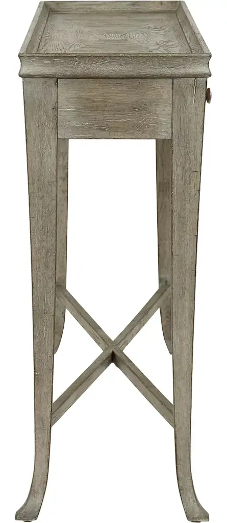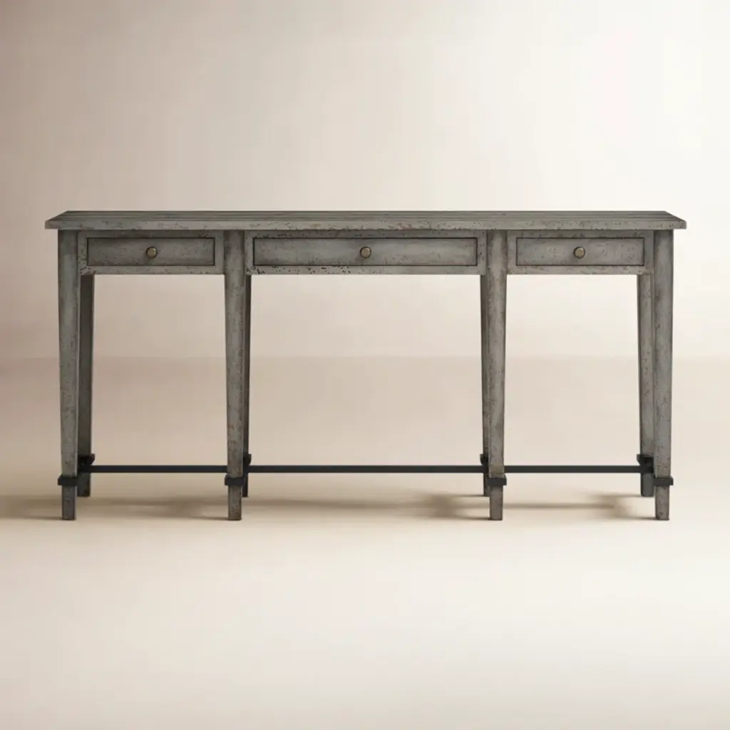Our Candler Park console table makes an elegant statement in any space. With a lightly distressed, multi-step burnished grey finish, this piece offers timeless style. Three dust-proofed drawers offer a convenient space to store items and keep your space organized.