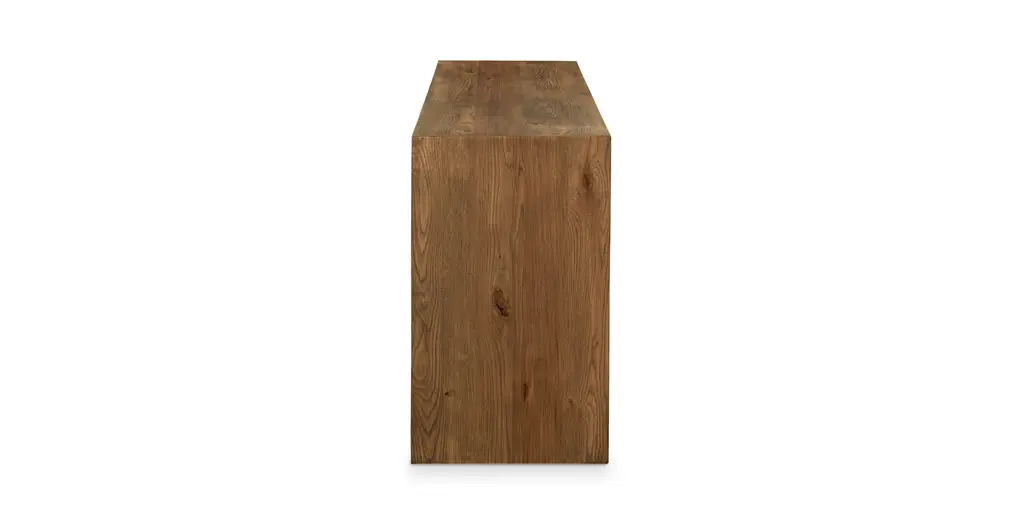We've paired neo-rustic materials with classically modern design to create our Cascade Console Table. Built one at a time by Bassett artisans in Virginia, the streamlined design of the Cascade allows the beauty of the knotty American oak to bask in a subtle but emphatic spotlight. The natural grain of the wood aligns carefully as it follows up one side, across the top, and down the other side, enhancing the table's impeccable lines.