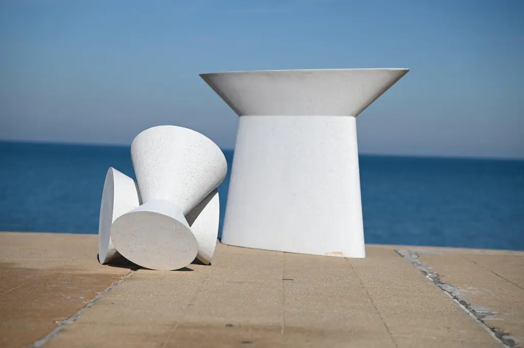 A minimalist’s take on erupting volcanoes, the Kona brings sophistication and conversation to any environment.Dimensions: Width 60 in. (152 cm), depth 14 in. (36 cm), height 36 in. (91 cm). Weight 80 lbs. (36 kg). No assembly required.Materials: resin, stone aggregate, fiberglass.Durable and designed to be used outdoors in all seasons and in residential or hospitality environments.Designed by: Zachary BitnerMade to order in Chicago, Illinois.About Zachary A. Design:Founded by Zac Bitner, Zachary A. Design is a furniture brand based in Chicago. The team combines an approachable art sensibility with a deep expertise of the materials. With a focus on the unexpected, they push the boundaries of material finish and refine age-old production techniques to be used in modern, artful furniture designs. Each piece is hand-cast in Chicago. The furniture is designed to be used indoors and outdoors in all seasons.