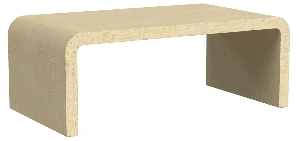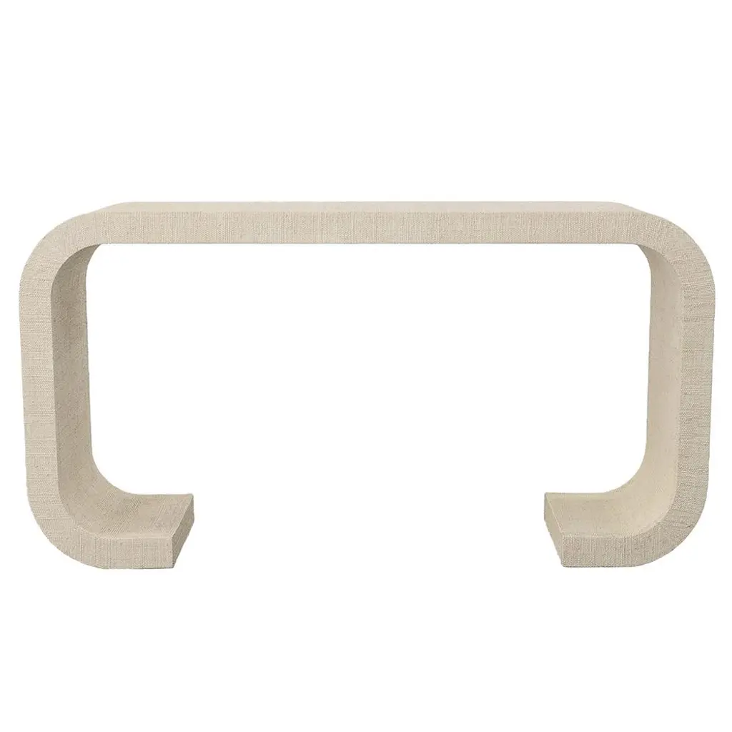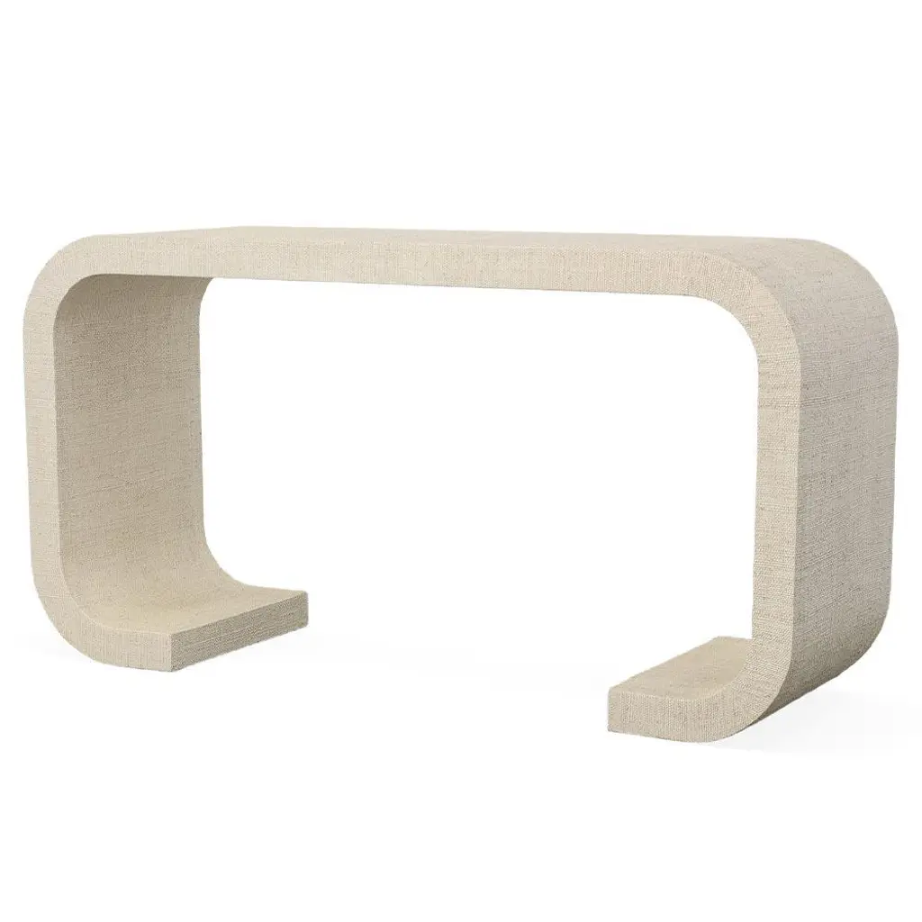 Century Dania Coastal Beach Off White Raffia Curved Console Table