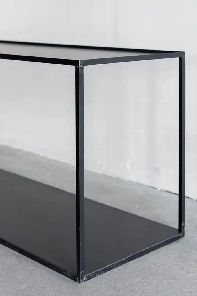 The Chambers Console is a low-profile piece that combines industrial and contemporary design. Crafted from solid steel, the console features a two-tiered design that provides ample storage space. Both the top and bottom shelf are sheered sheet steel, creating a sleek and modern look while the custom finish allows the natural variation of the steel to shine through.Handcrafted in Los Angeles, California by a small and dedicated team, this console is made to order to ensure that every piece we build meets the unique needs and preferences of the customer.INDUSTRIAL STEEL, POLY FINISHPERSONALIZE THIS PIECEFor all furniture, protection from heat and moisture is crucial to the longevity of the piece. To help prevent scratches, use adhesive felt pads, coasters, placemats, and avoid sliding objects across the surface of the piece when possible.Lacquer + Paint + Metal Surfaces - Dry dust with a clean microfiber or feather duster. Wipe with a slightly damp microfiber towel and mild cleaner as needed. Wipe dry promptly. We recommend that you clean with ammonia-free Windex or a mild surface cleaner. Please stay away from bleach, alcohol, or petroleum based cleaners. You may use a general purpose wood cleaner.Avoid using furniture polish as over time it can accumulate and leave a residue.Wax + Oil Finish - Dry dust with a clean microfiber or feather duster. Wipe with a slightly damp microfiber towel. Wipe dry immediately. Clean with ammonia-free Windex or a mild surface cleaner. Stay away from bleach, alcohol, or petroleum based cleaners. Our natural wax and oil finishes will dull over time. Wax or teak oil may be reapplied as needed using a soft white cloth. Raw Wood Dry dust with a clean microfiber or feather duster. Use a damp microfiber towel or soft brush as needed. Do not use any product containing wax or oil to clean.Outdoor Furniture - Outdoor furniture may require frequent oiling. A cover is strongly recommended for all outdoor furniture. Avoid prolonged exposure to moisture and/or direct sunlight. If exposed to rain, allow cushions to air dry completely before putting them back on the frame. Leather Care - Dry dust with a clean microfiber or feather duster. Wipe with a slightly damp microfiber towel. Do not use cleaning products on the leather. The recommended leather conditioner is Skidmore’s Original Leather Cream. Marble + Stone - Dry dust with a clean microfiber or feather duster. Wipe with a slightly damp microfiber towel. Wipe dry immediately. For daily cleaning we recommend using Orange Glo and/or Method Stone Cleaner on the marble. All marble and stone surfaces are protected with a sealer. To maintain the overall appearance and protection of the marble or stone, reseal with Miracle 511 Seal & Enhance. It is important to use coasters and clean up moisture immediately on marble and stone surfaces.Additional information:Dimension: 55"W + 14"D + 19"H 80LBS
