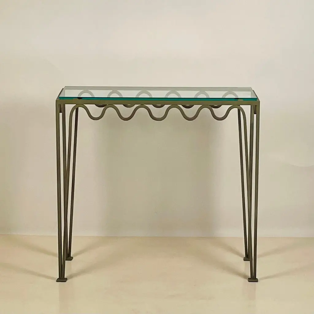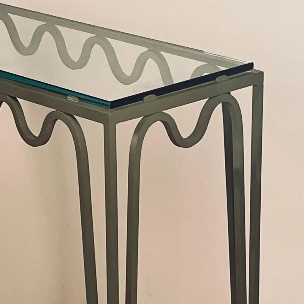 Chic Verdigris 'Meandre' And Glass Console By Design Frères