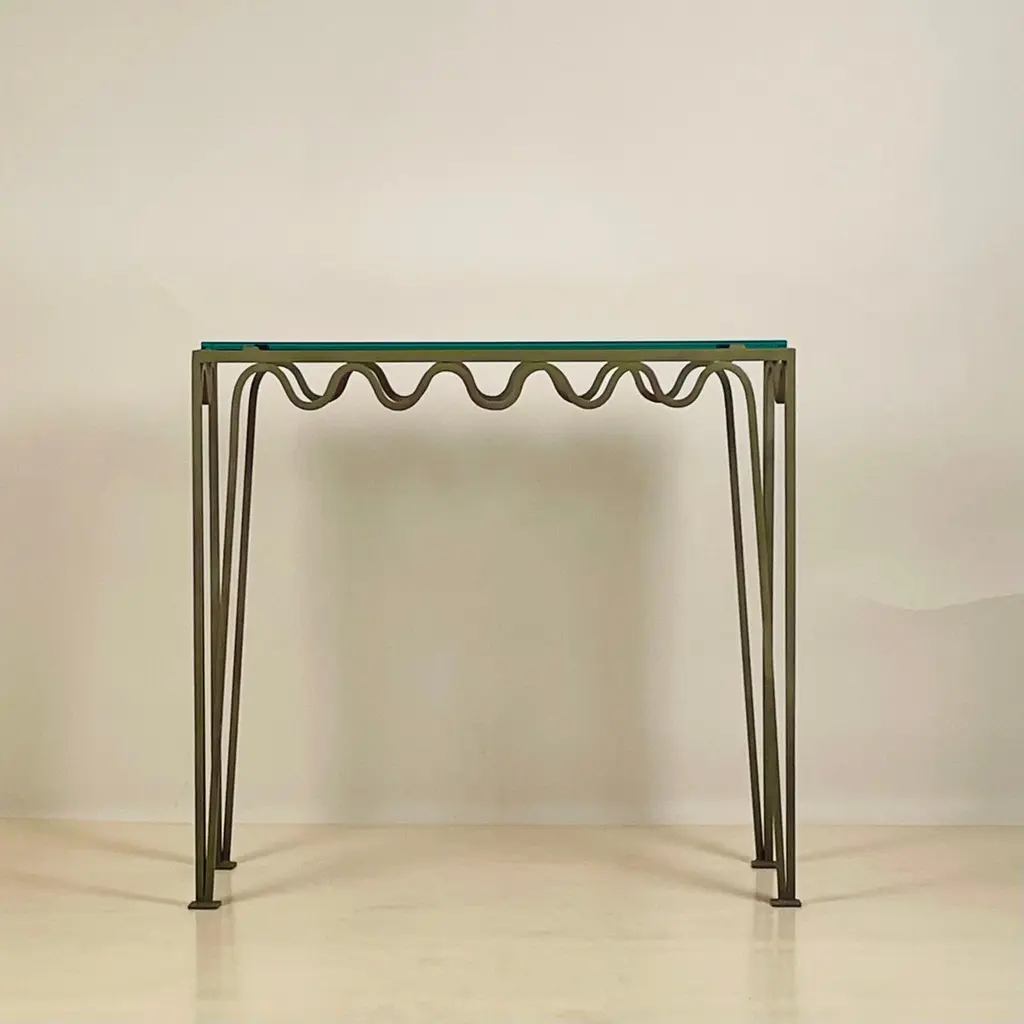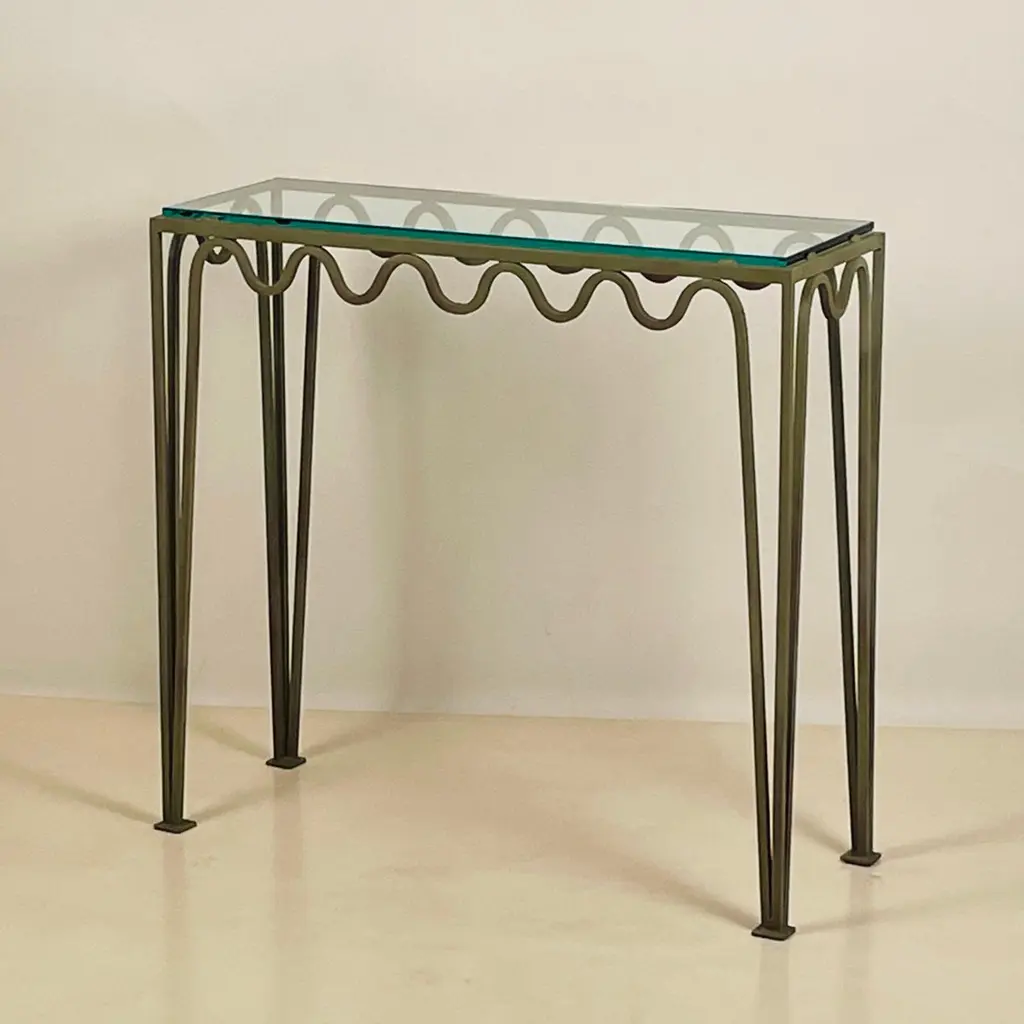 'Meandre' verdigris and glass console by Design Frères.Chic and understated.