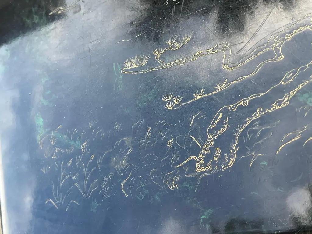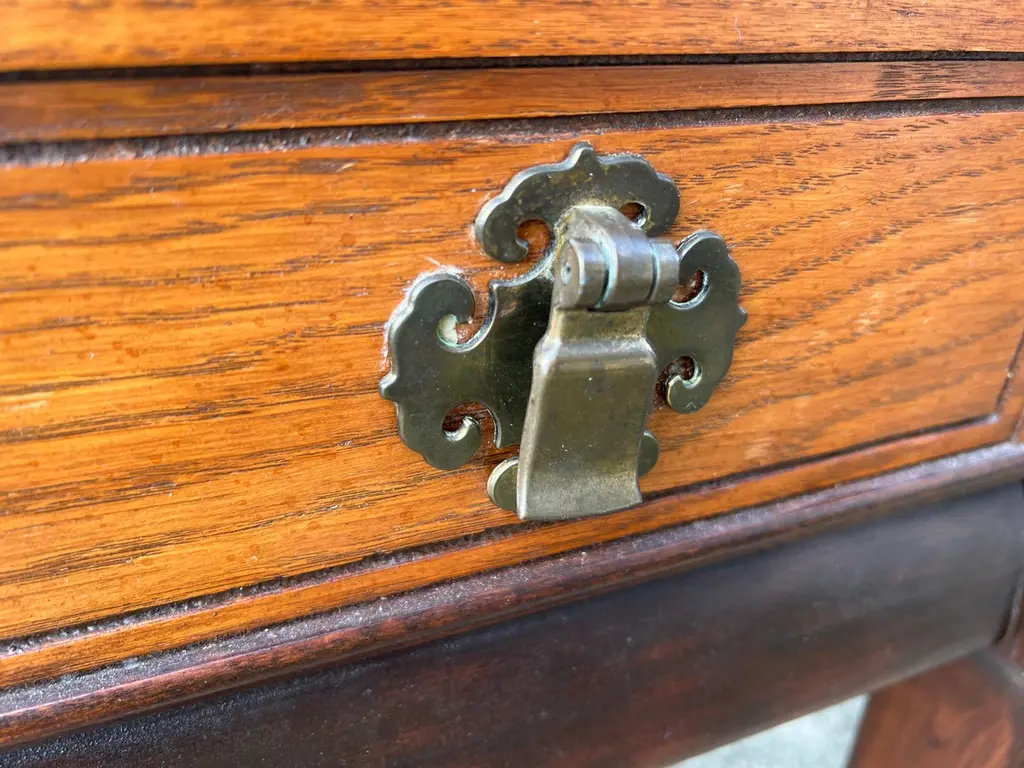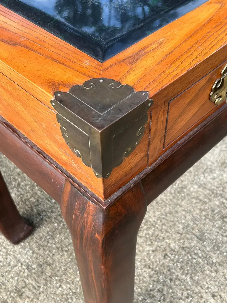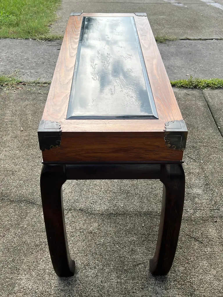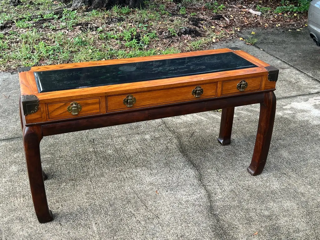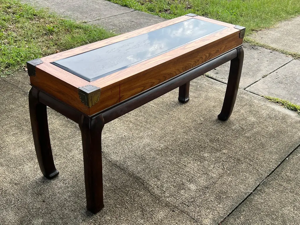 Chinoiserie Console Table By Bassett Ca' 1970's With Glass Etched Insert