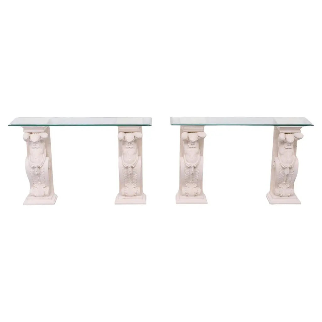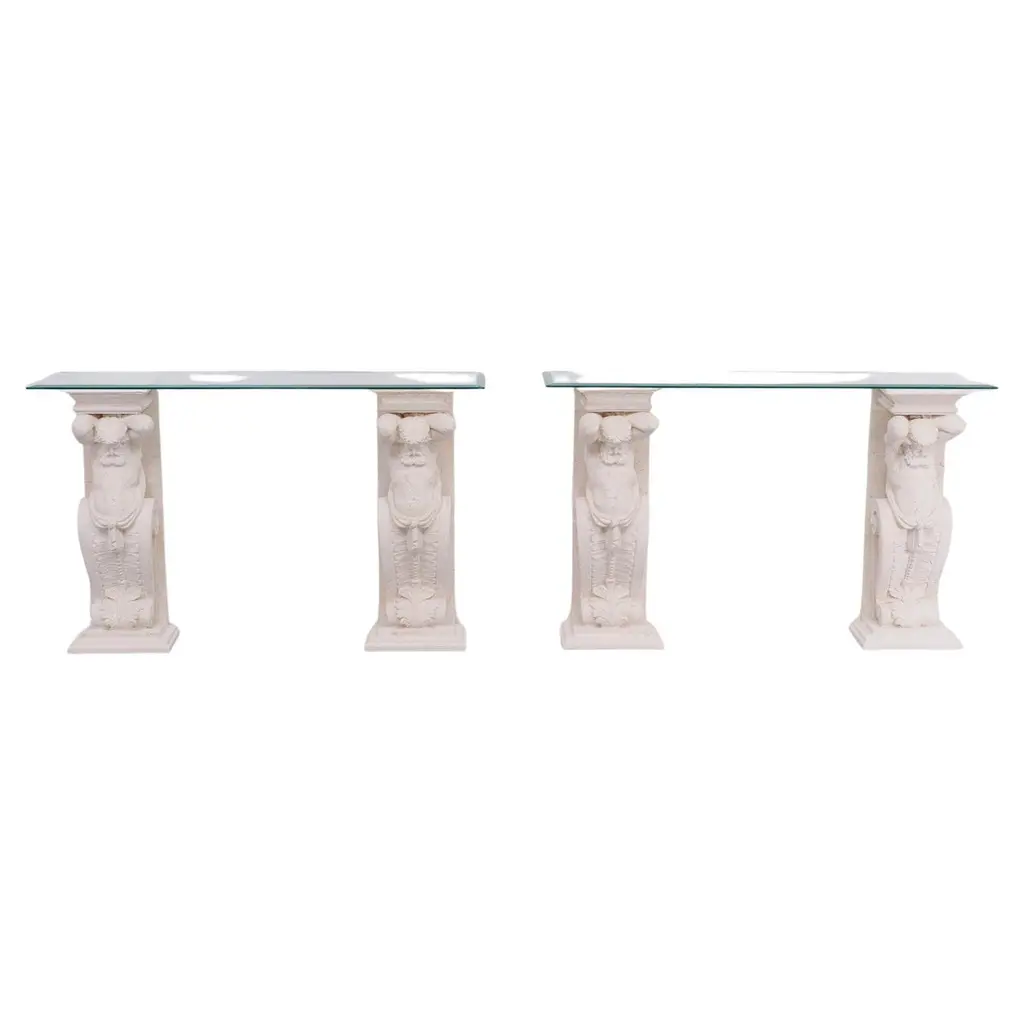 Classic Greek Cast Stone Console Tables, 1970s
