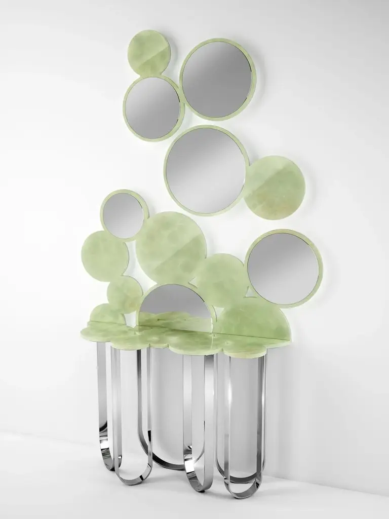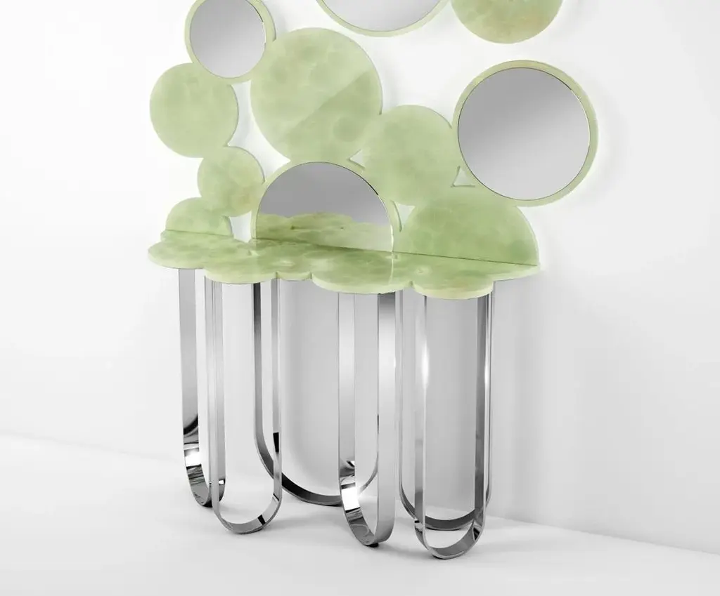 Cloud Console Table In Crystal Glass And Stainless Steel By Barberini & Gunnell