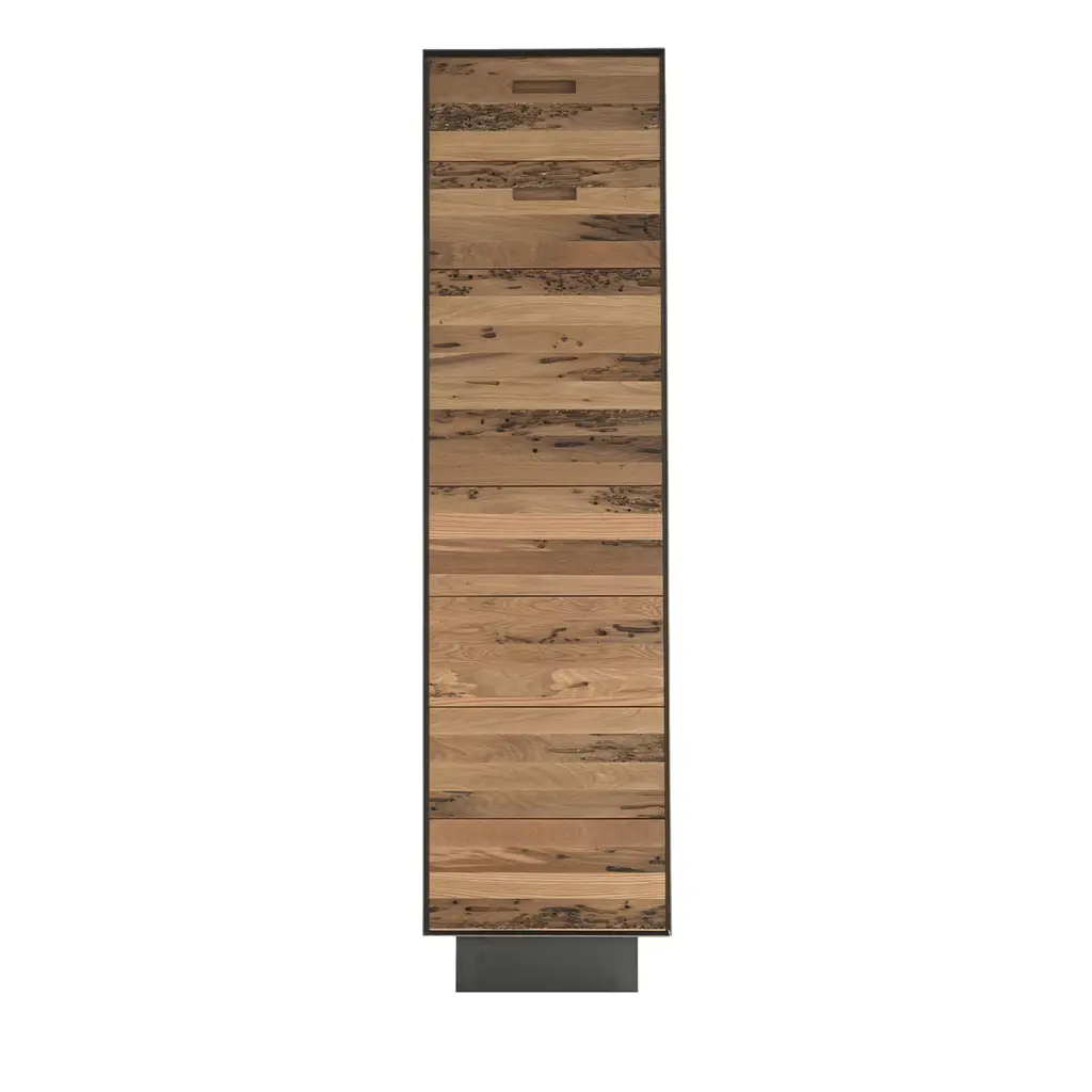 CODICE BRICCOLE is a console table made of briccola wood.It is an interpretation of what the briccole recovered from the Venetian lagoon represent.It depicts Aristotle’s five elements: water, air, and fire are the elements that have left their mark on the surface of the logs; earth and aether are the elements that produced them.The project is a DNA, a codification of the briccola within the landscape context of Venice.