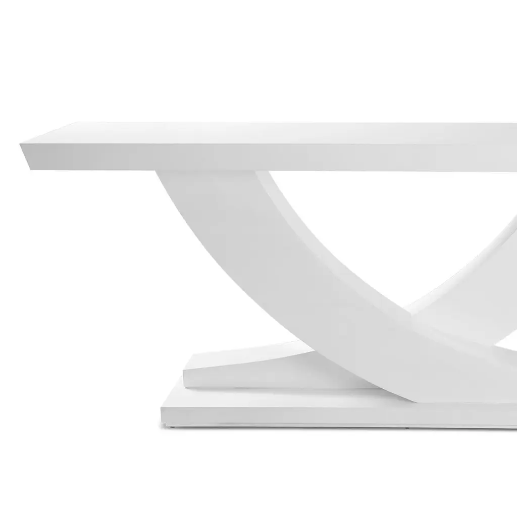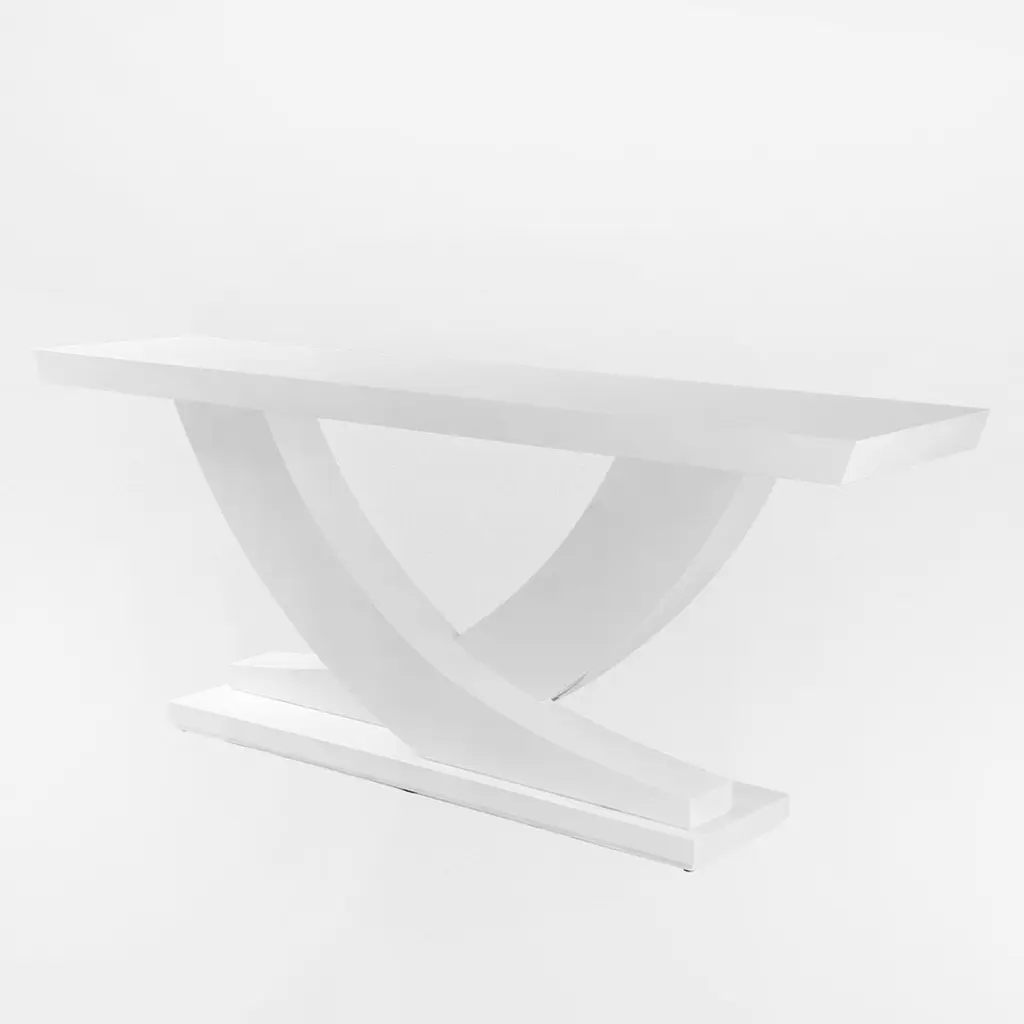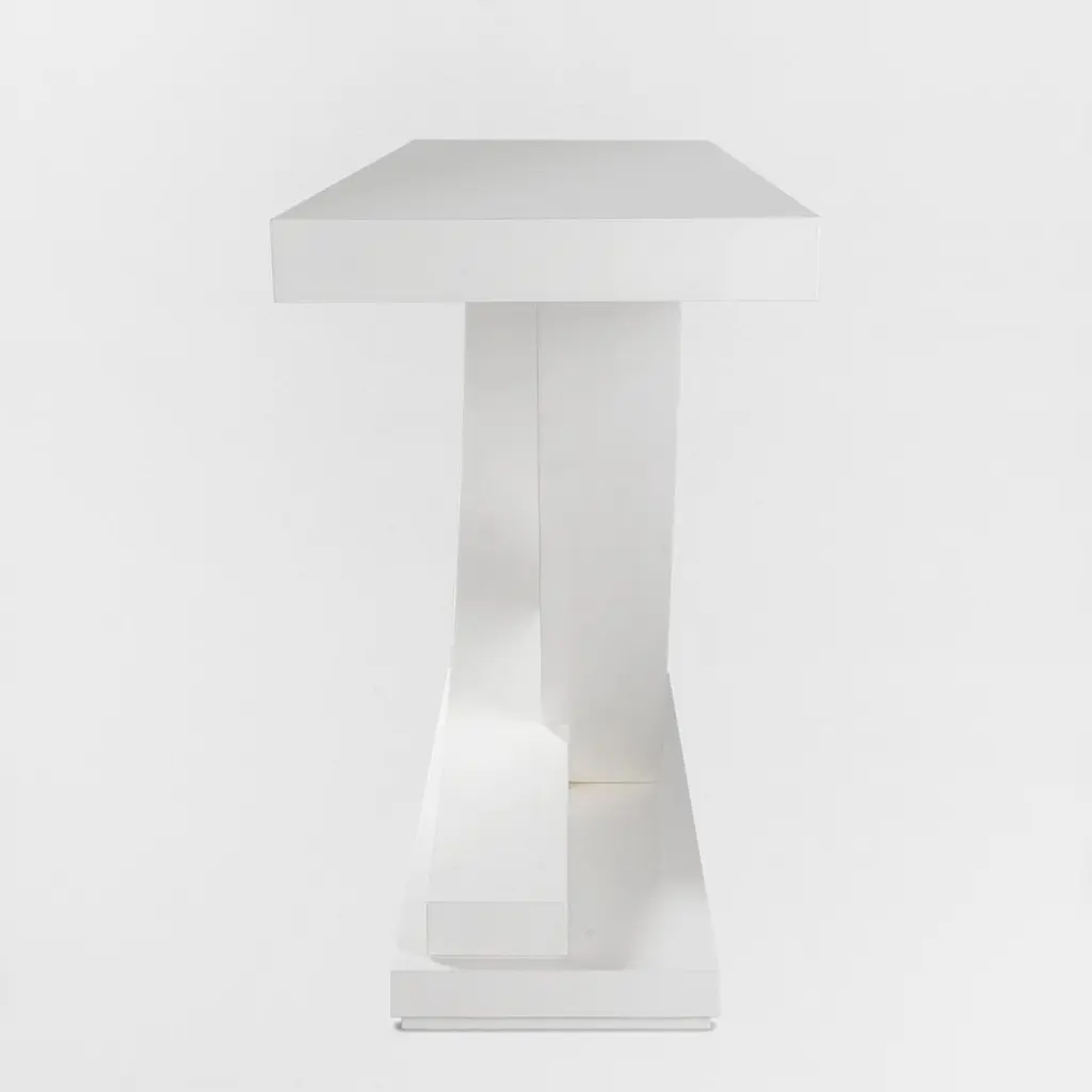 Console table Colisa white with hand carved solidmahogany wood structure and base in white lacqueredfinish. With veneered mahogany top.Also available in ivory lacquered finish, or tobacco finishor in black satin finish.