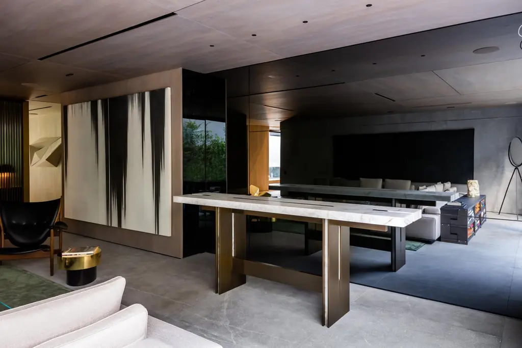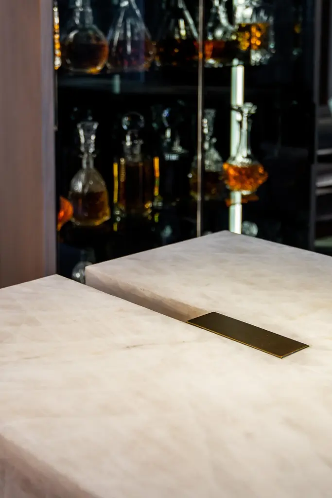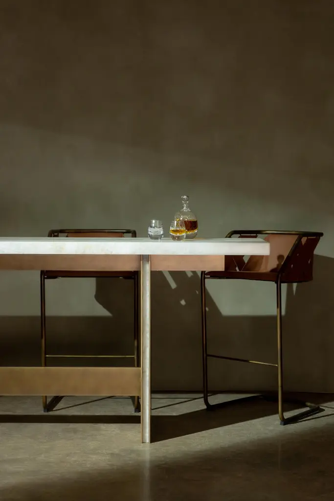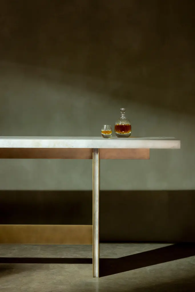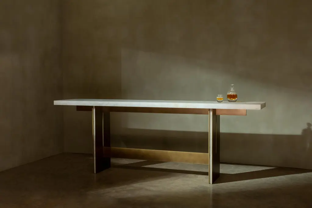 Comunal bar console by Simon HamuiDimensions: D290 x W55 x H102 cmMaterials: Stone, MetalAlso available in different dimensions. Prices may vary according to the finish chosen.Bar console in a stone countertop with metal inlays that sits atop metal legs with stone inlays.Simonhamui Collection is a line of high-end furniture created by Simon Hamui. The collection is another expansion of the brand that brings together classic pieces and represents his style and body of work throughout the years.The pieces in the collection are timeless and versatile and can work well in a variety of spaces both individually or in conjunction.