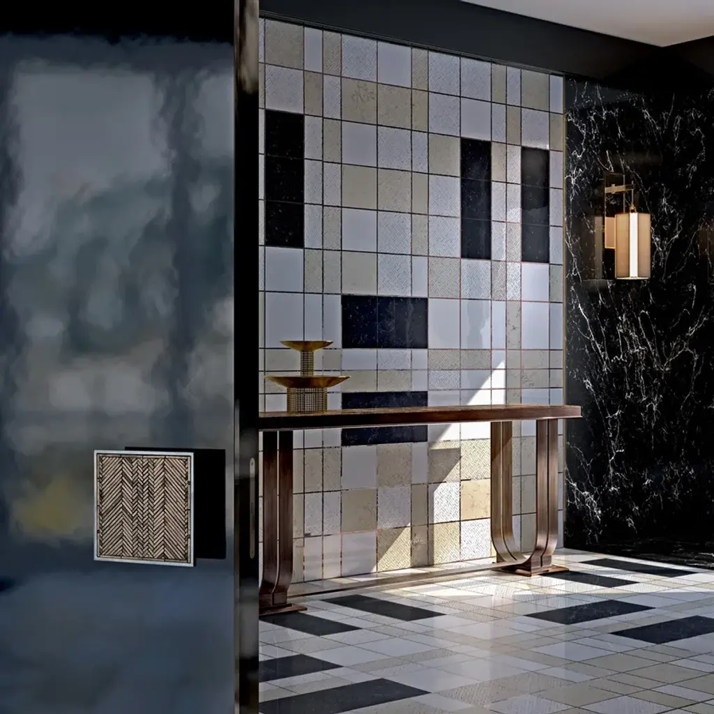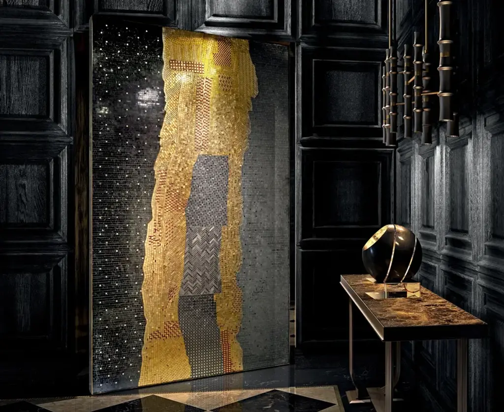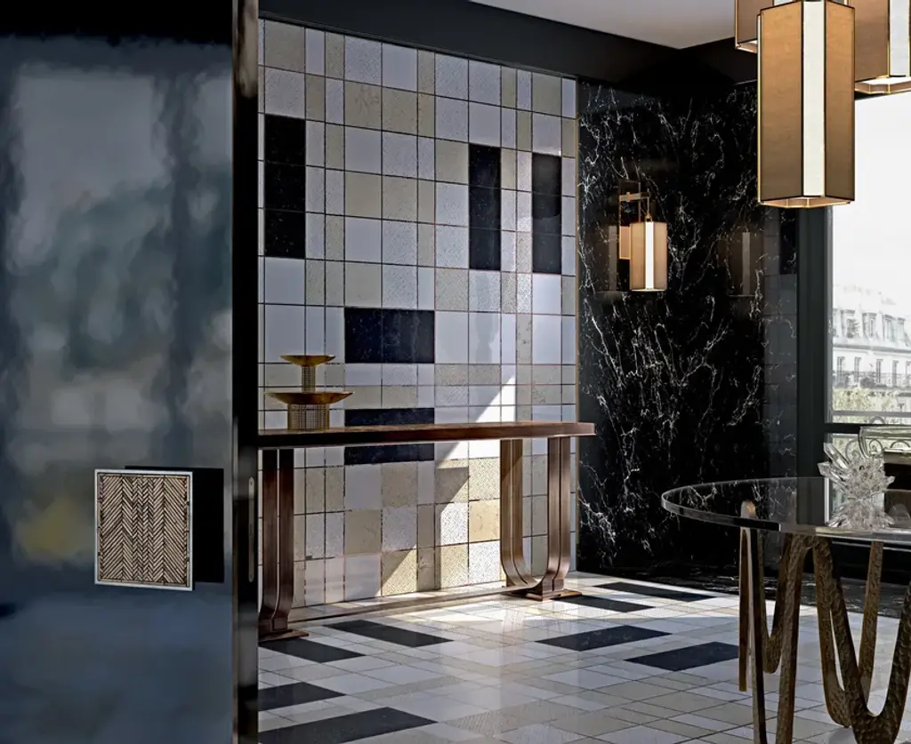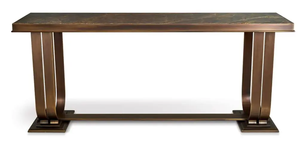 Concorde is a modern and contemporary console characterized by a marble top that perfectly blends with the structure in metal. An elegant and modern statement piece at home as well as in the office. Console made of burnished brass. Top in black Aziz or Calacatta Gold marble.