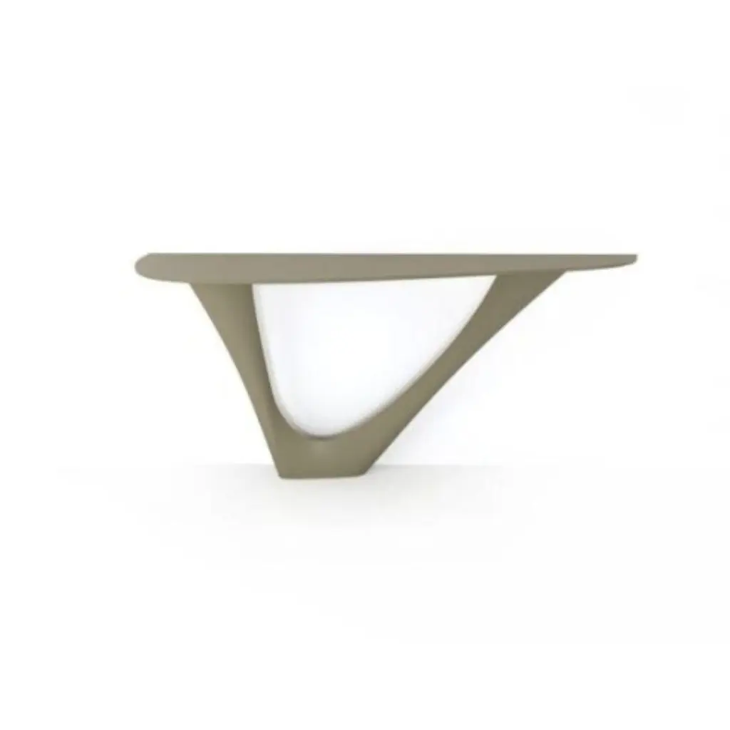 Concrete Grey G-Console Steel Base with Steel Top Mono by ZietaDimensions: D 43 x W 159 x H 75 cm Material: Carbon steel.Also available in different colors and dimensions. Please contact us.G-Console is another bionic object in our collection. Created for smaller spaces, it gives another possibility in interior planning and at the same time preserves the unique shape of the original G-Table. Both objects were made for enthusiasts of bionic forms. Made with FiDU technology, it reminds of vines or tree roots. Nature symbolizes a constant changeability and harmony that comes out of it. A diverse structure refers to both natural forms and processes. G-Console comes in two versions – Mono and Duo.About Zieta: Zietas main goal is to deliver uniqueness and customization in design and construction while keeping the production, transport, and warehousing innovatively efficient.This is how they imagine the future world: Light, durable structures of customized applications produced on demand out of one-of-a-kind parts, yet efficiently.They use a computer-controlled production process. Customized pattern, customized form, customized function, one-of-a-kind product, and outstanding precision are what they deliver.You will find all of this philosophy reflected in the products. They research, they discover new possibilities, they play with forms and they deliver a beautiful, innovative, surprising outcome to people who love the design and who care about design development.They believe their work is a valuable contribution to the world of design not only by the unique beauty of the forms but most of all by opening ultra-innovative opportunities of forming and new paths for the world of the future.