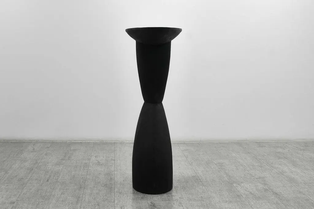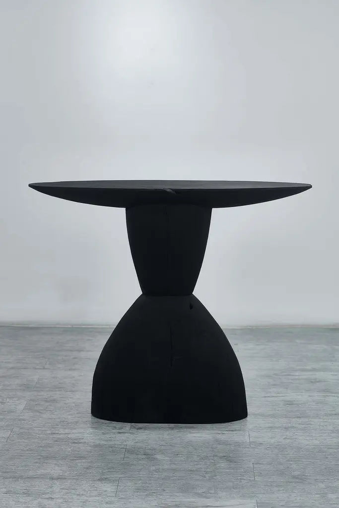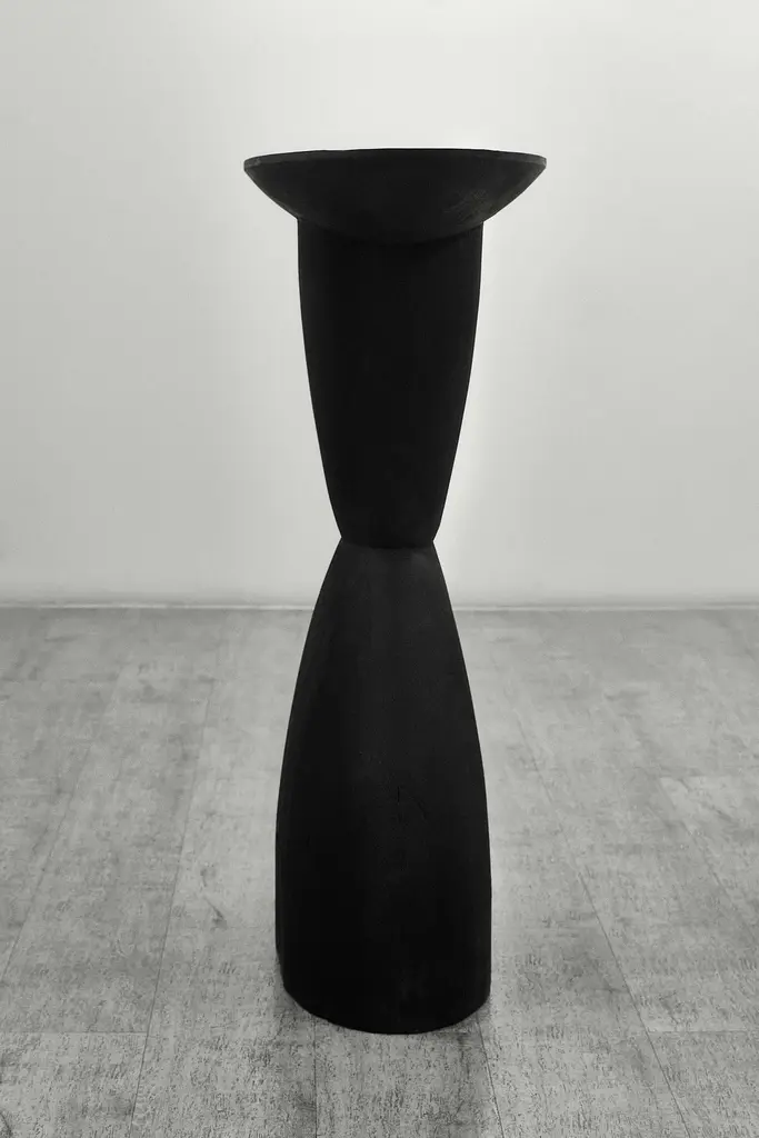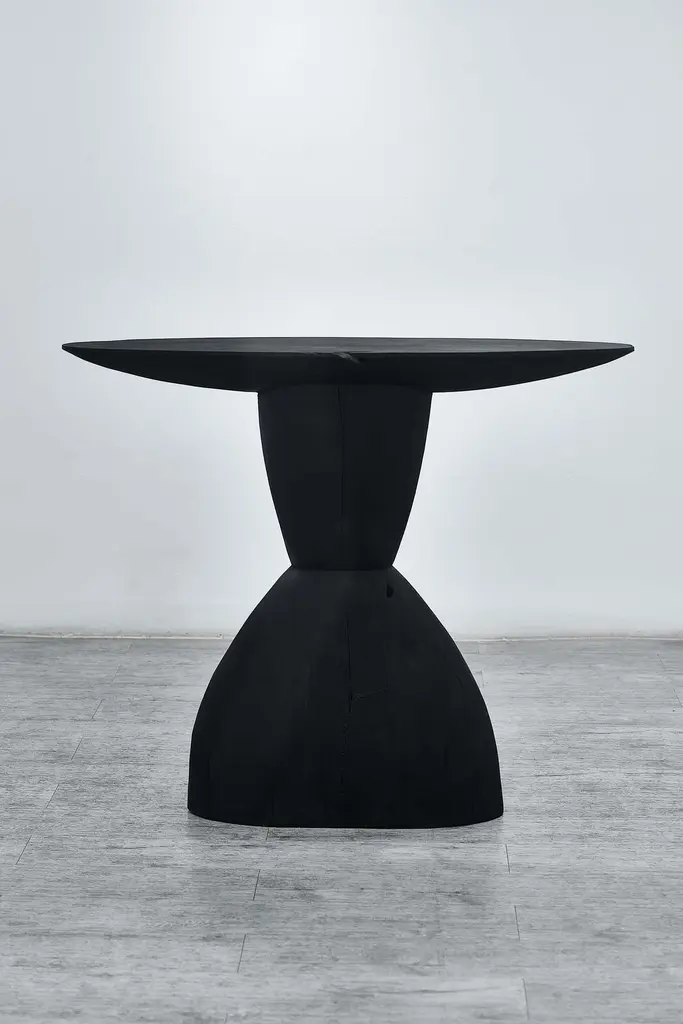 Customizable oval console TOTA by Camilo Andres Rodriguez Marquez (aka CarmWorks)Solid oak or cedar / Burnt wood or natural Standard size: H. 75 x 60 x 30 cm (customizable) Each piece is made to order and hand crafted by the artist. --Camilo Andres Rodriguez Marquez is a Colombian born designer with a degree in Industrial Design from Colombia (FUAC) and Mexico (UNAM). He is fascinated by photography and cinematography, and intends to unify these two artistic expressions into his design in the form of narrative, projecting and communicating the interaction between the world and his objects. In his visits to several places in Mexico, such as San Juan Chamula in the sierra of Chiapas, Tzintzuntzan in Michoacán or Real de Catorce in San Luis Potosí, he was exposed to experiences that provided him with the awareness of how traditions, storytelling and rituals play an important role on how humans interpret their reality and our role in the universe.My hope is that we become attuned with what surrounds us in a sensoral and emotional state, by perceiving these pieces within a story of creation. This is why I want to demonstrate where it originated from and its relationship with the craftsman. This journey leaves a trace that can be seen in those imperfections and details that the artlessness of the handicraft possesses.We aim to provide a holistic view, where the mind can find a pleasurable and seamless contemplation in regards to the imperfection and the impermanence of nature.CarmWorks is a response to this exploration, on shaping people’s lives by suggesting a broader sensibility and providing a story to tell with these objects.