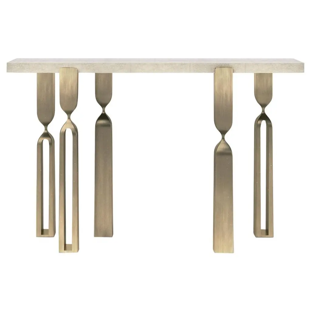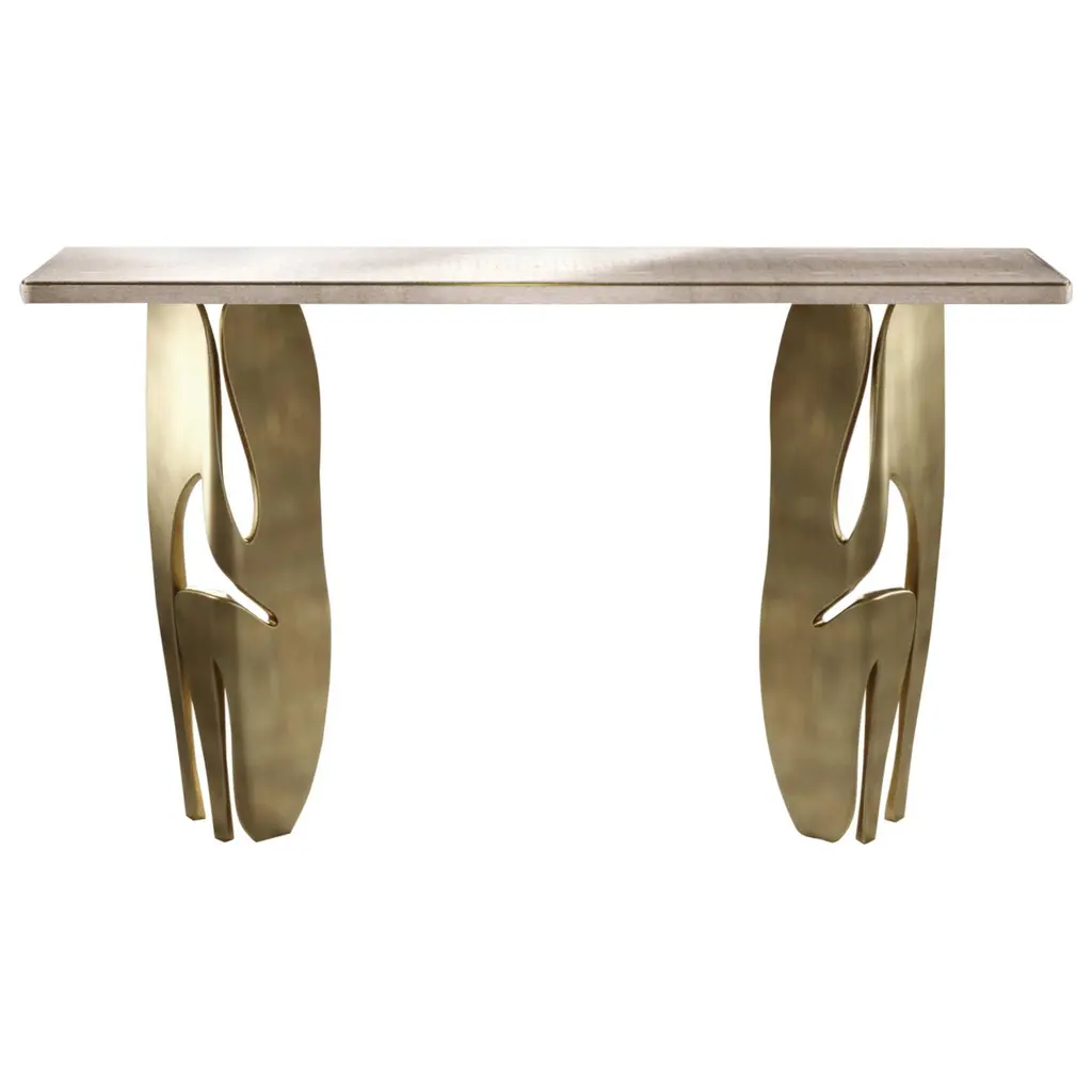 Console In Cream Shagreen And Bronze-Patina Brass By Kifu Paris