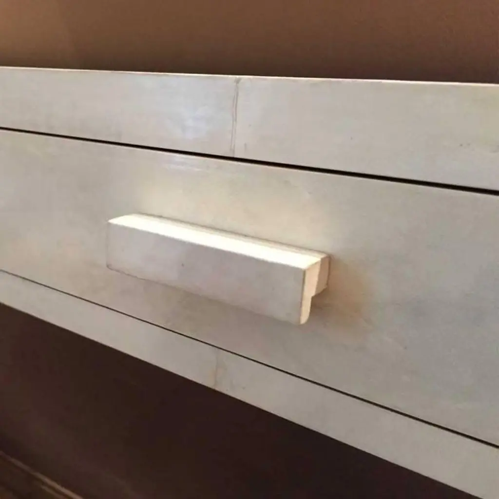 Elegantissima consolle in pergamena con due cassetti.È possibile realizzare i nostri arredi su misura del cliente. È possibile utilizzare la pergamena in vari colori ( bianco, avorio, tabacco,rosso,nero,verde), così come varie essenze di legno.I nostri arredi sono realizzati completamente a mano dai nostri maestri artigiani italiani.Per questo possiamo anche modificare i nostri disegni su richiesta del cliente.Non vengono usate parti metalliche e nemmeno prodotti sintetici.La pergamena viene lucidata a mano con gomma lacca.