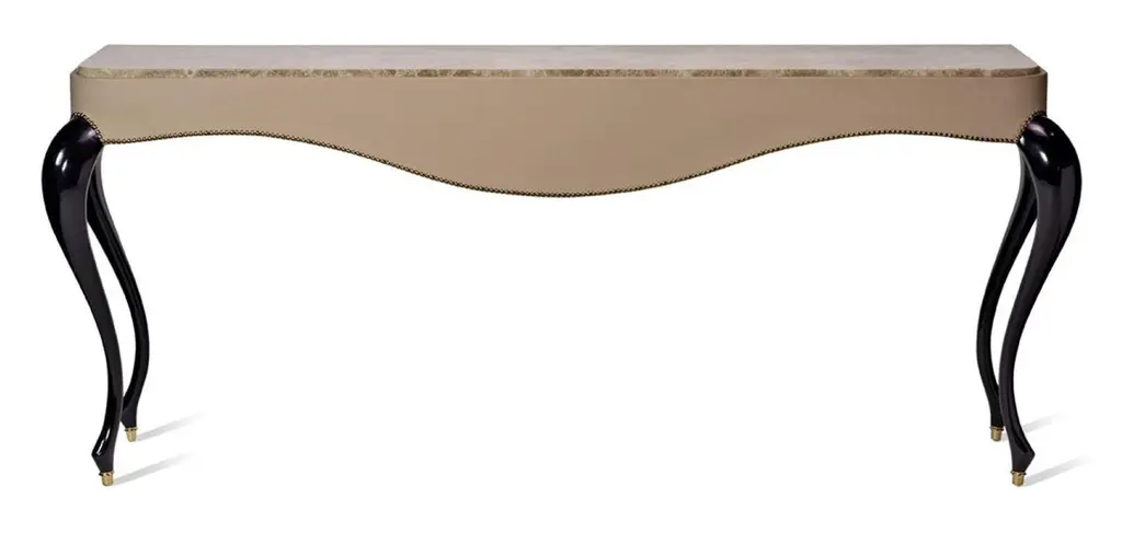 Console Legs Glossy Lacquer Leather Cover With Nails Marble Top Caps In Bronze