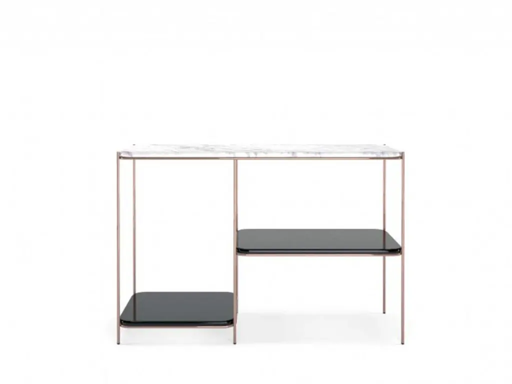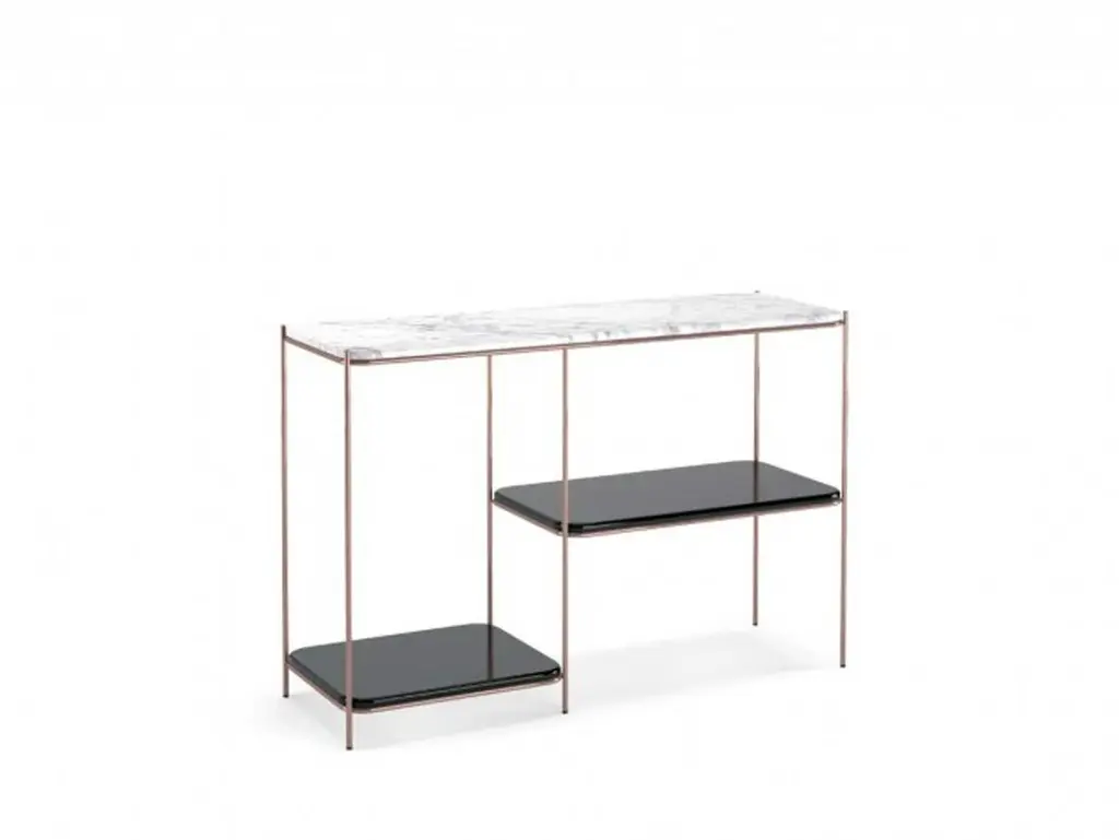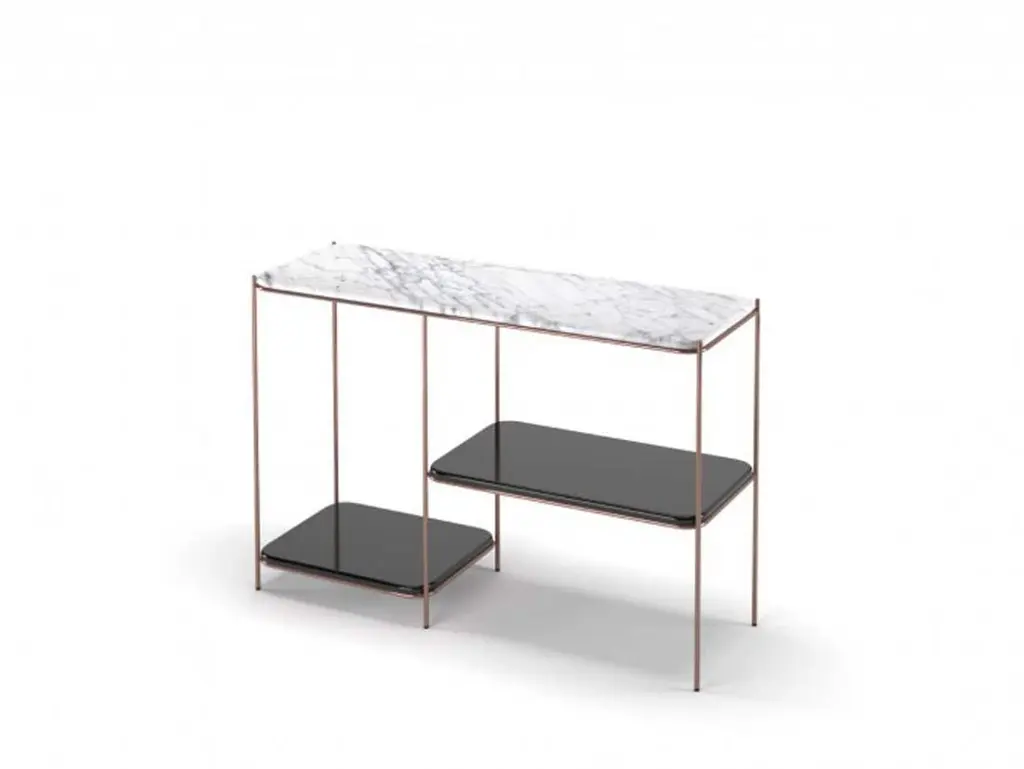 ConsoleBianco Carrara marble topBlack lacquered topsCopper stainless steel legsMeasures: W 120 cm, D 40 cm, H 80 cmProduction Time: 6 Weeks.