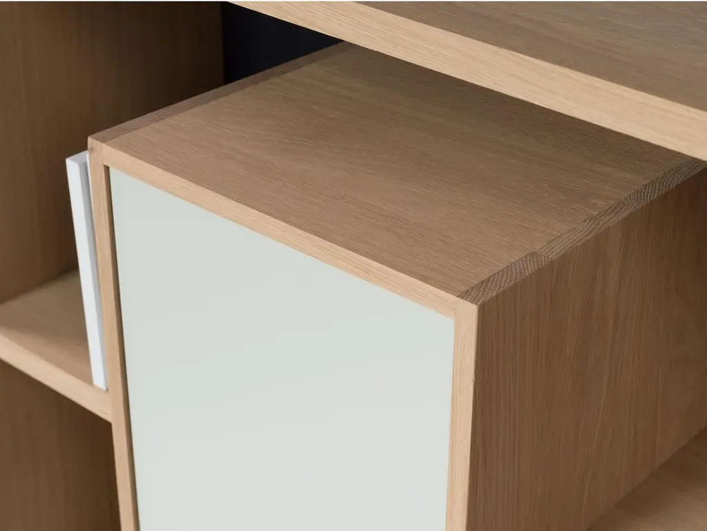 Placed in an entrance, a vestibule, a corridor, a living room, console mixing is a piece of furniture at the same time decorative and practical. Space-saving, it allows to highlight a Luminaire, a beautiful object. It can become an extra desk for tablet, phone, papers, etc.Drawer mounted on Hettich slides. Color of the facade and customizable background. French oak 100% solid. Made in Anjou.