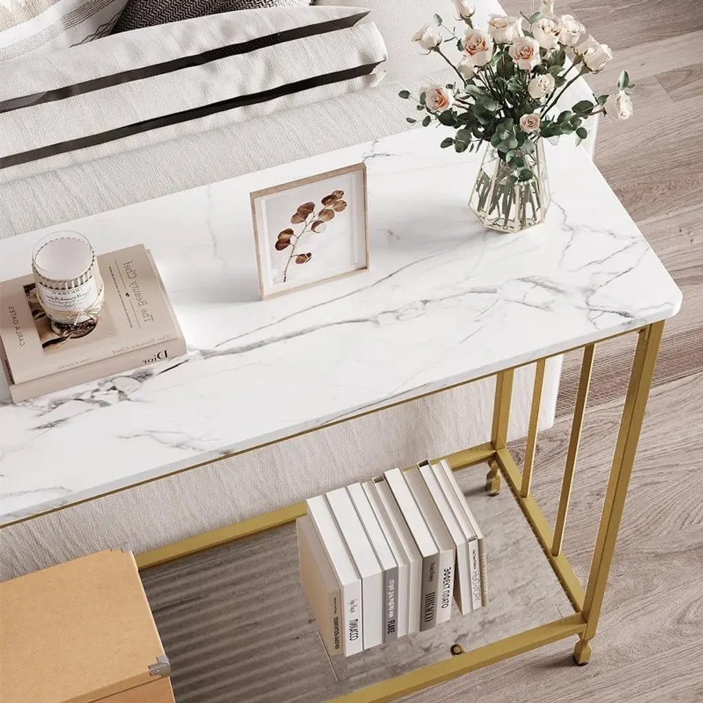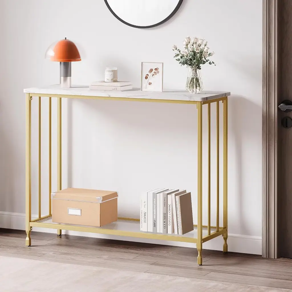 Console Table, Sofa Tables Narrow Entryway Table with Glass Shelf and Metal Frame, 41.5" Behind Couch Table Industrial Hallway Table for Living Room, Foyer, Bedroom, bottom floor of this 2-tier sofa table maximizes available space by providing additional storage options for shoes, baskets, or other essentials. The sleek design allows the modern console table to be placed discreetly behind furniture or next to a window, keeping your space organized and clutter-free.