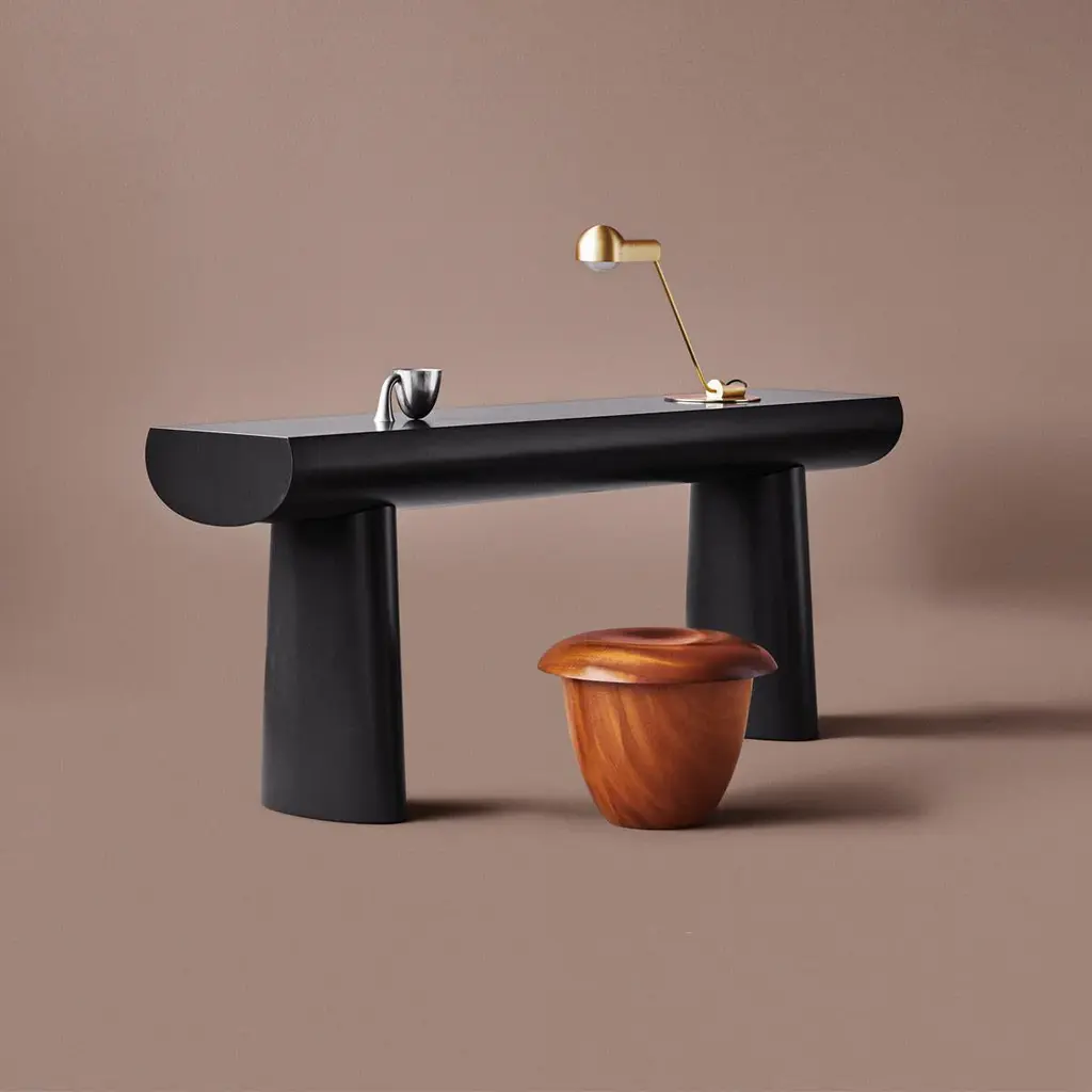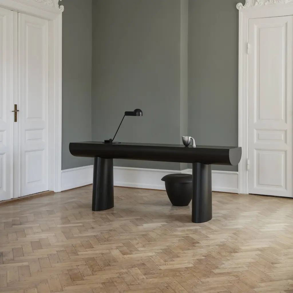 Dutch artist and designer Aldo Bakker masterfully skirts the line between sculpture and furnishing in Console Table. With his signature abstracted silhouette, it’s a deft play on proportion with the extended line of the tabletop measuring the same width as the base of the legs, which have variable spacing as an option for this made-to-order piece. In a range of rich shades, the table is fashioned in a moldable acrylic, solid-surface composite with a visually seamless appearance.