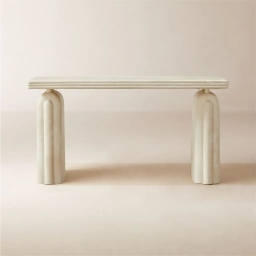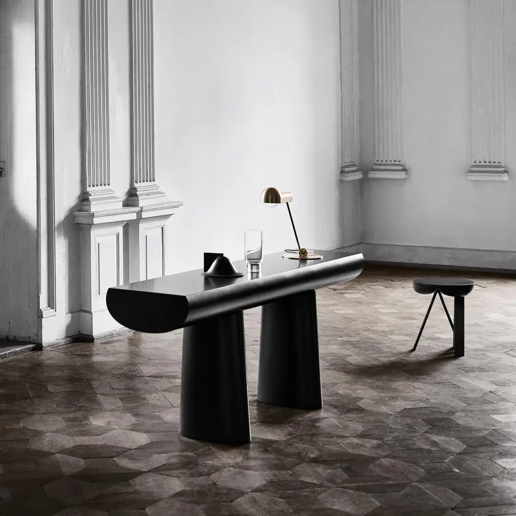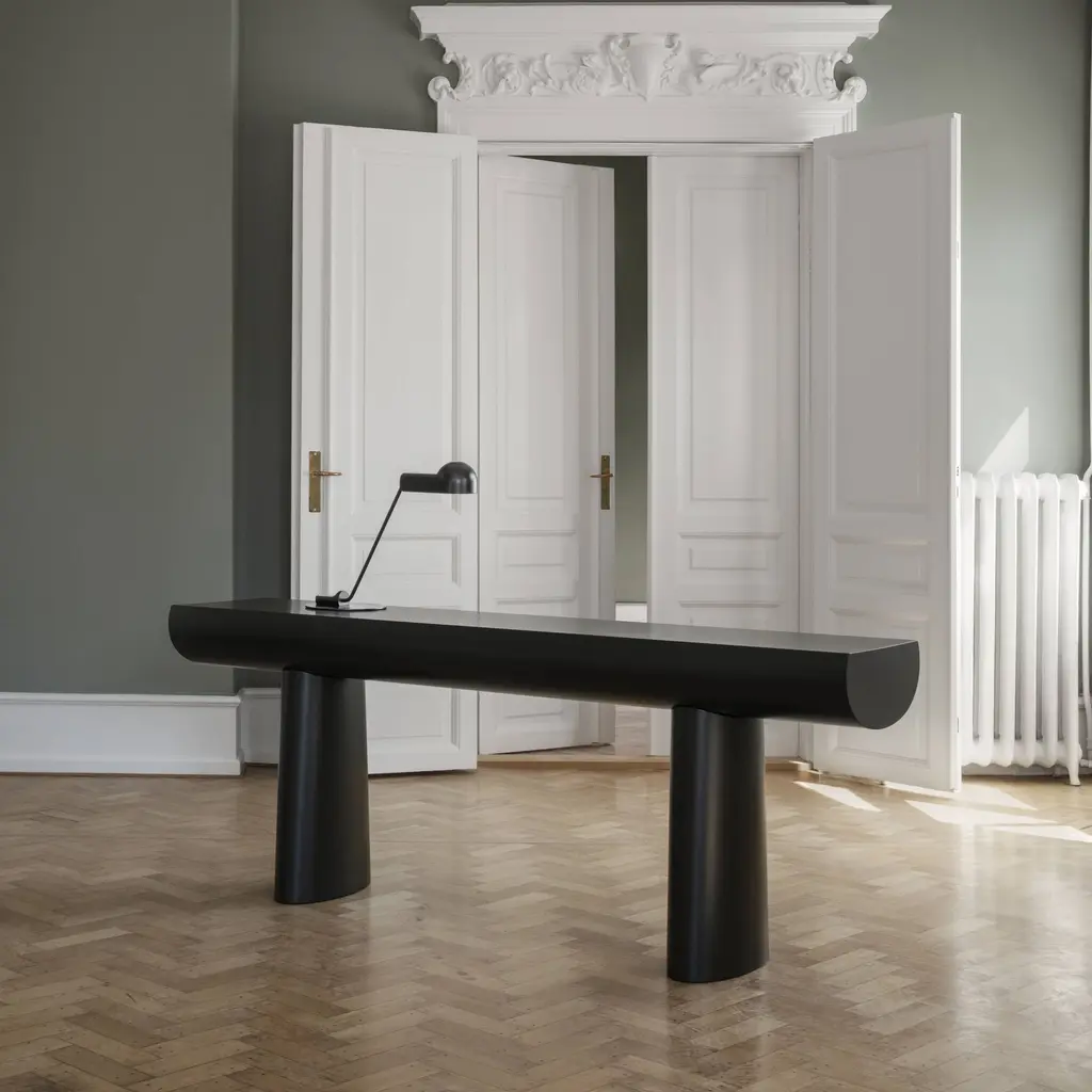 Dutch artist and designer Aldo Bakker masterfully skirts the line between sculpture and furnishing in Console Table. With his signature abstracted silhouette, it’s a deft play on proportion with the extended line of the tabletop measuring the same width as the base of the legs, which have variable spacing as an option for this made-to-order piece. In a range of rich shades, the table is fashioned in a moldable acrylic, solid-surface composite with a visually seamless appearance.