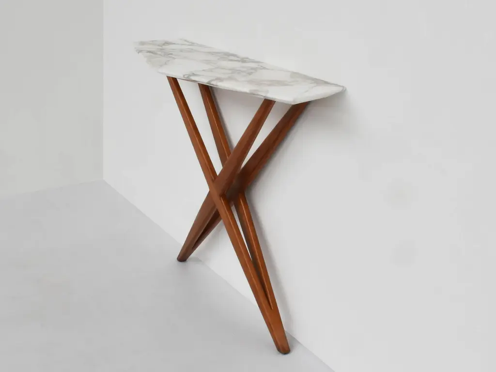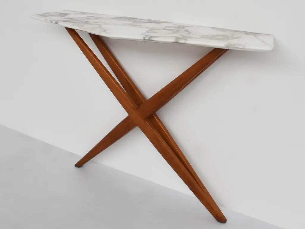 Console Table in Fruit Wood and Marble from Studio BBPR Milano, 1958, in Very Good conditions. Designed 1950 to 1959 I have official proof of authenticity such as vintage catalogs, designer records, or other literature sources and take full responsibility for any authenticity issues arising from misattribution