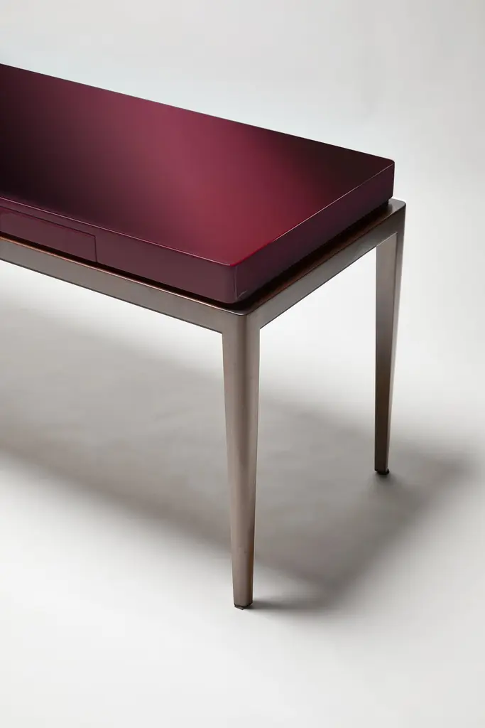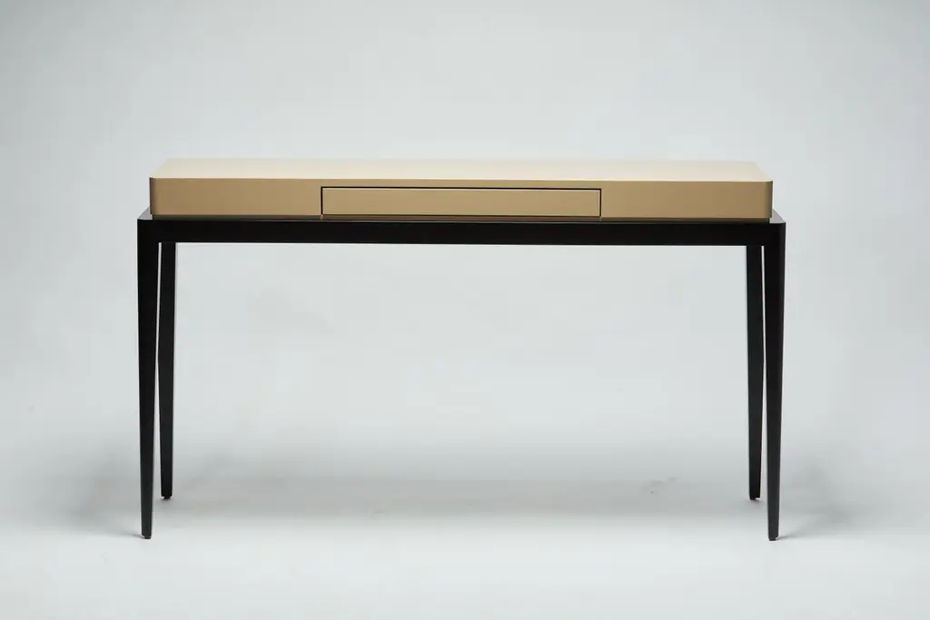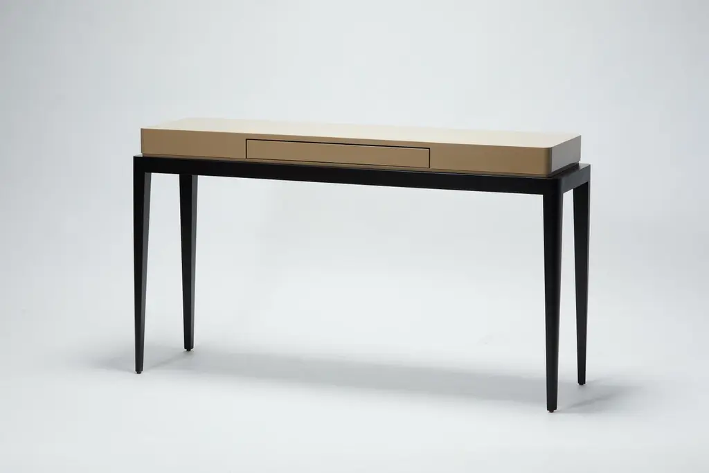 The perfect console; Size : 160cmFlat surface, smooth, purity of the line only asking to be inhabited. If it is aconsole or a desk, TARA is a piece that distinguish itself with the power of itsminimalism. It is enough to dress up any interior. The glossy or matte lacquered top exists in several colors, the same ones as the dot table and offer to the sight a dive into intensity of material. A piece allowing to forge intimacy.Walnut legs1 drawer, leather finish inside the drawer.Special size and color made to order. Exits also as a desk.Designed by Reda Amalou, 2020Availability on request.