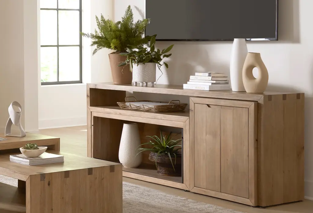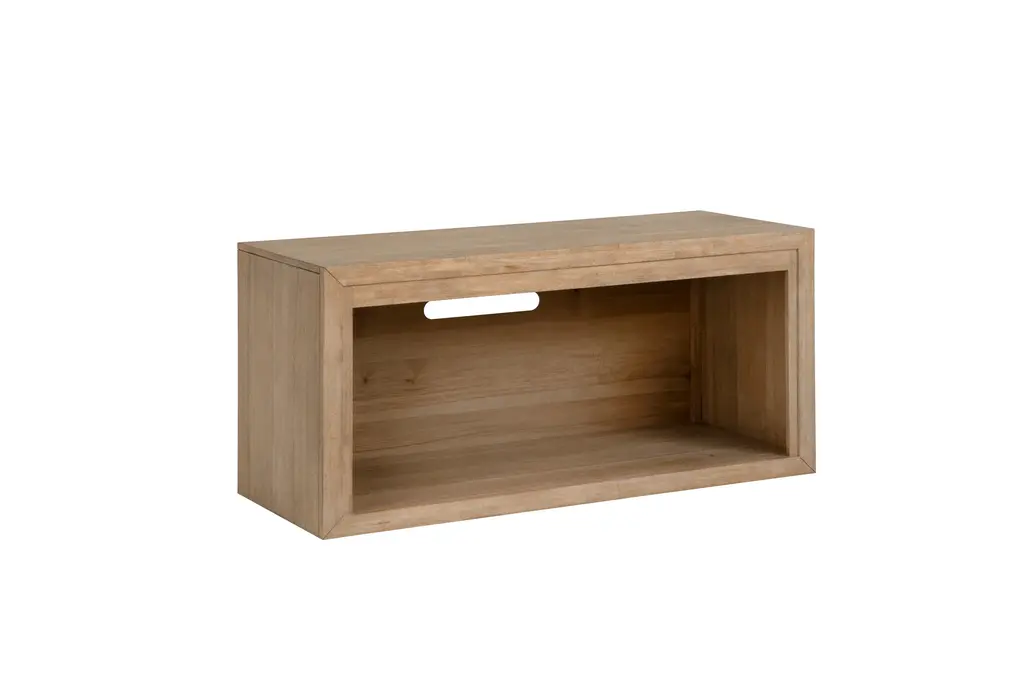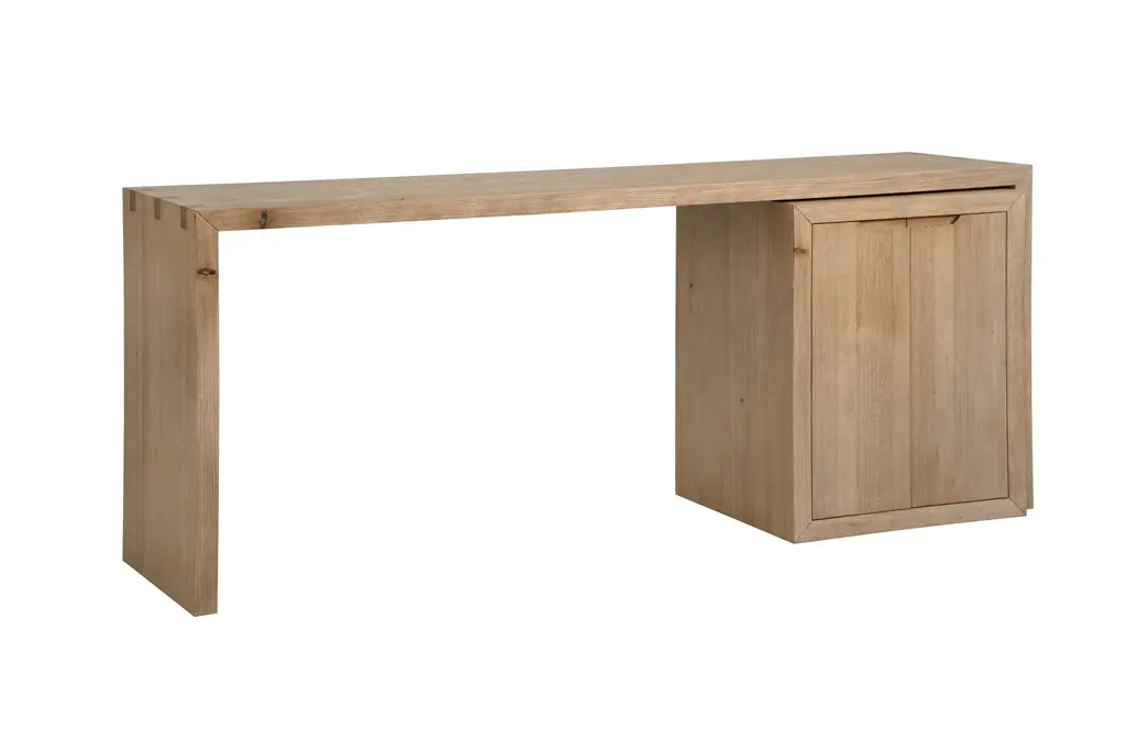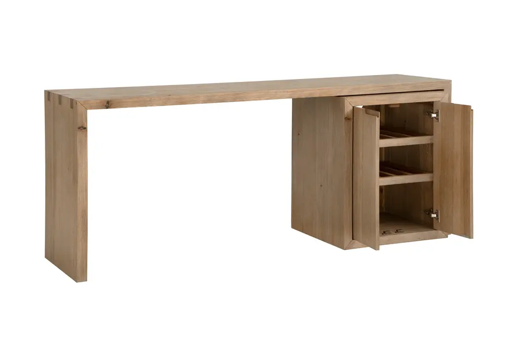 Exuding the best of natural modernism, this nesting console table takes the simplest of forms and crafts a piece that can be utilized in endless configurations for a supreme capsule space. Use all the pieces together for a storage-filled setup or split them apart to create various storage and display pieces. Wire management holes allow for easy cord access, keeping them out of sight and out of mind! The removable door box piece includes two adjustable shelves that can also serve as wine bottle storage. Its light finish brings an airy vibe to geometric silhouettes and helps to craft the perfect earthly yet contemporary piece!