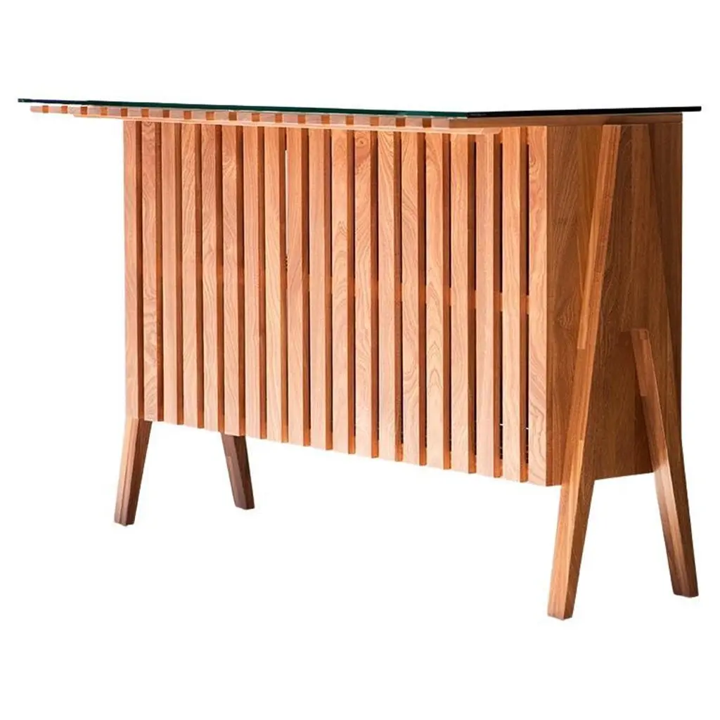 Contemporary Console Table, Made In Italy, Brass And Eucalyptus Wood
