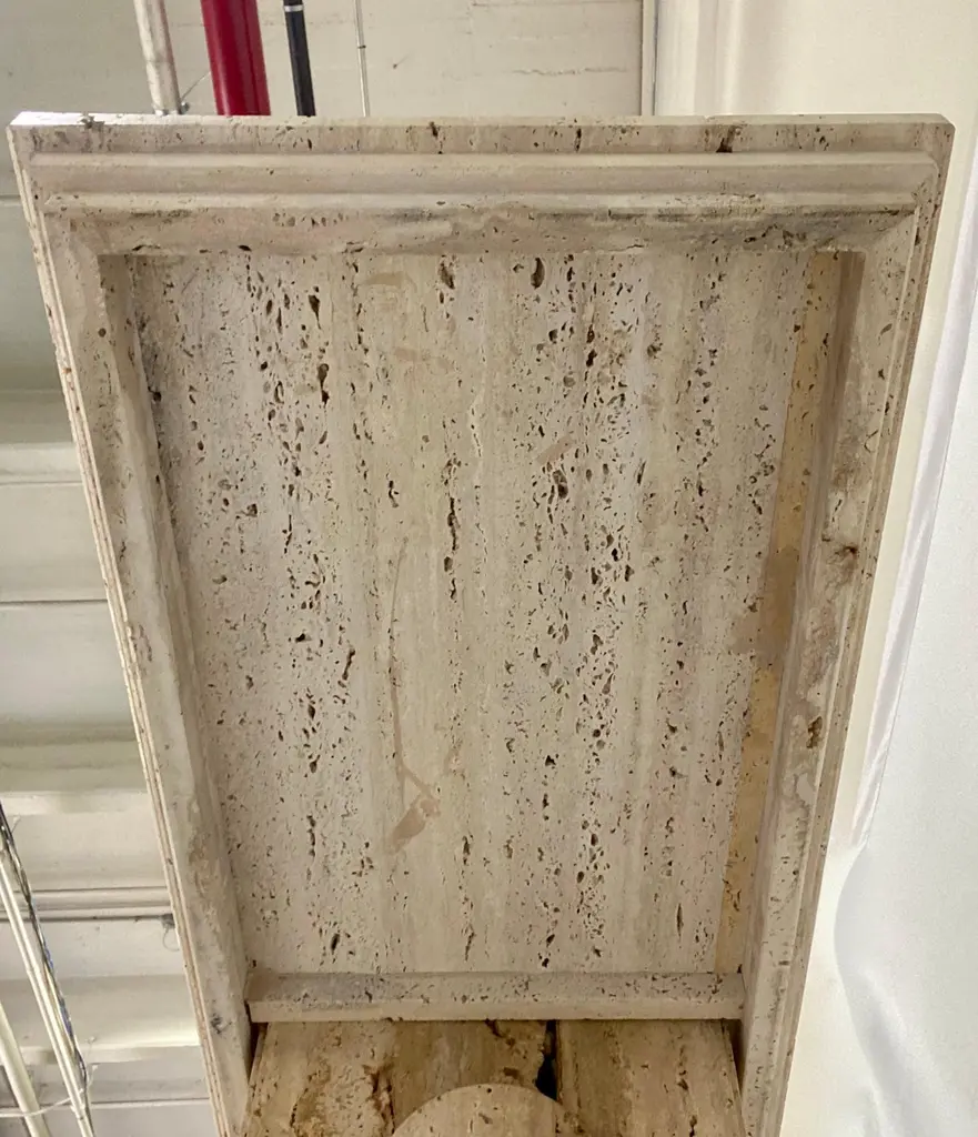 Contemporary Italian Minimalist Organic White Beige Travertine Marble Console