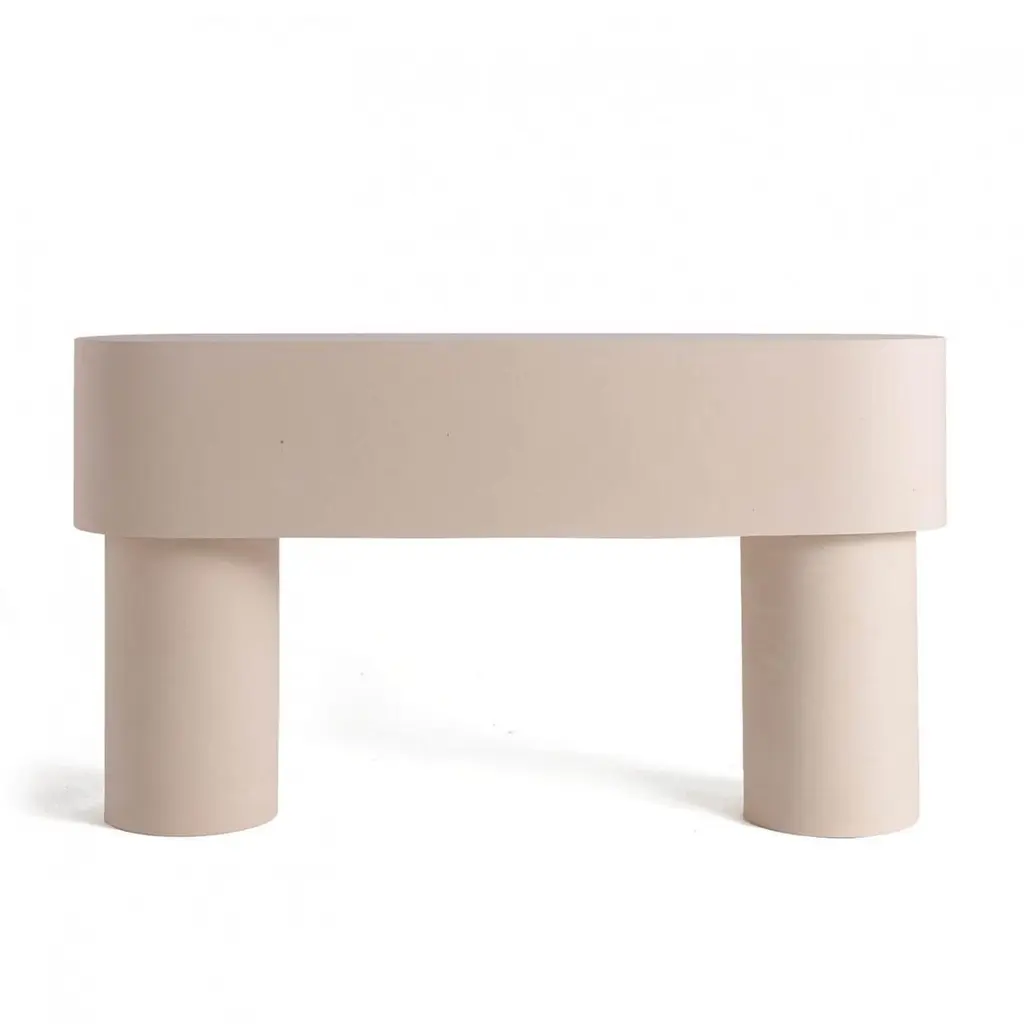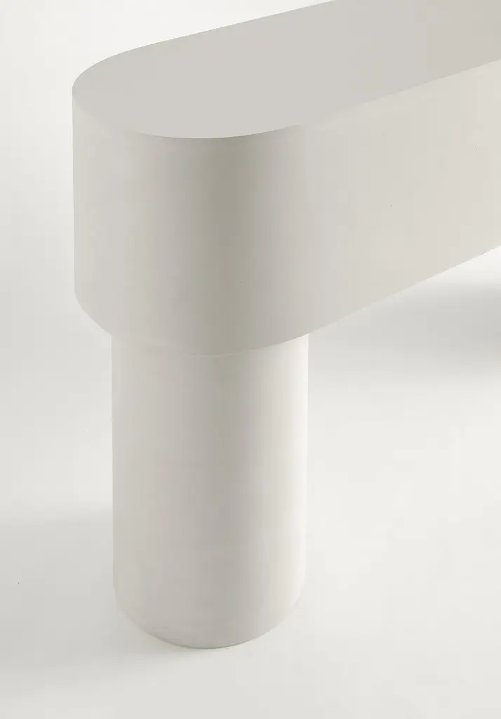 Contemporary Jesmonite Console - Pilotis console table by Malgorzata Bany.Inspired by support columns that lift a building above ground or water. Each piece is formed using a mould made of paper, used only once, making each piece unique. Available in pink, flint and chalk colors.Design: Malgorzata BanyMaterial: Jesmonite stoneDimensions (in): 59.06 x 15.75 x 31.50"Dimensions (cm): 150 x 40 x H80 cmMade by hand, in United Kingdom.Crate included in the price.