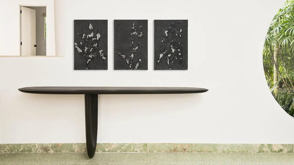 'Savignyplatz' Console Table by Man of PartsSigned by Sebastian Herkner Solid oak wood Finishes available: - Black - Mist- Ivory- Nude - WhiskeyDimensions available:Small: H. 75 x 45 x 160 cm / Large: H. 85 x 45 x 220 cmModel shown: Black oak, Small 160 cm __________________This sculptural console table was given the name of Savignyplatz park, in Berlin, an idyllic park in a city square where friends gather to share company and the artistic energy of the city. Designer Sebastian Herkner’s console table is also designed to be a venue to share with the organic influence of the park and artistic energy and influence of sculptor Henry Moore. Man of Parts is a Canadian based design studio offering contemporary furniture and lighting. Born from the vision of German collector and travel enthusiast Stephan Weishaupt, this truly modern studio embodies a post-national perspective. Man of Parts creations are European-made and inspired from around the world. Their collections are thought through to the smallest detail, whether it's an armchair in Italian fabric, a wooden chair from Germany or an occasional table. Beyond the design of quality designer furniture, Man of Parts conveys a borderless way of life that is undeniably elegant. The contrasting elements and clean, organic lines of Man of Parts pieces are sure to add a subtle touch to any interior.