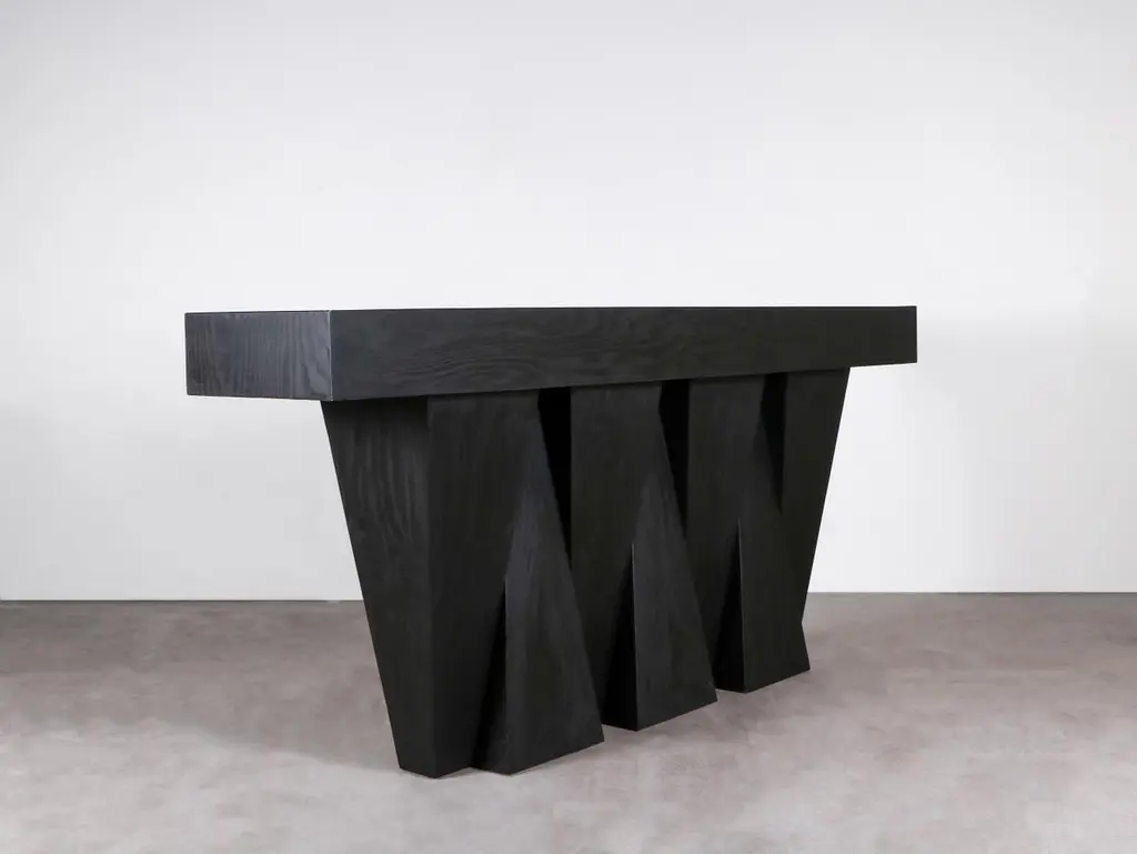 Contemporay Black Plywood Console, Rectangular Top By Lucas Tyra Morten
