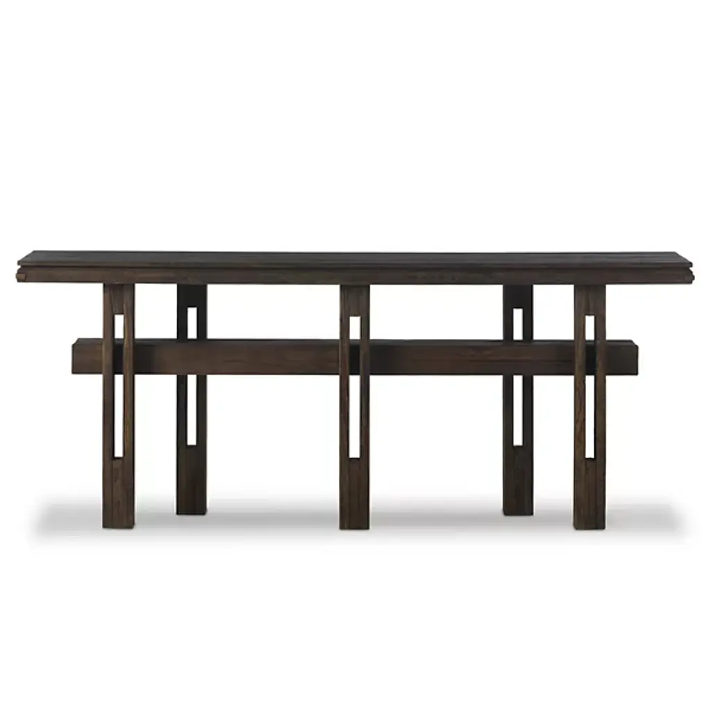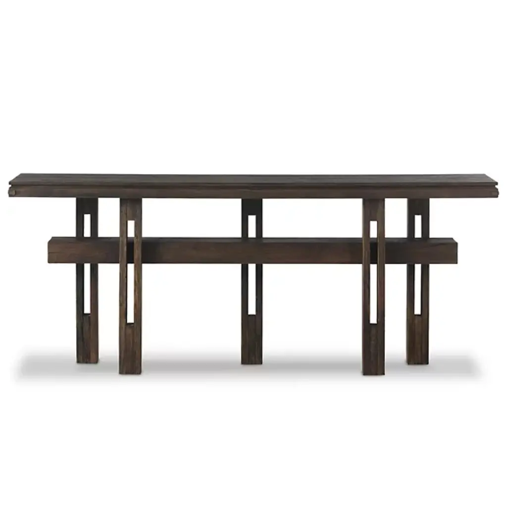 Inspired by the beauty of Wabi Sabi design, the Contessa Console Table from Four Hands introduces an organic, natural aesthetic to any space. The staggered legs and chamfered edges create a sense of understated elegance, while the central stretcher adds structural charm and visual balance. Perfect for media displays, decor arrangements, or functional storage, it effortlessly enhances living rooms, entryways, or hallways. Its warm wood tones and artisanal craftsmanship blend timeless simplicity with modern sophistication.
