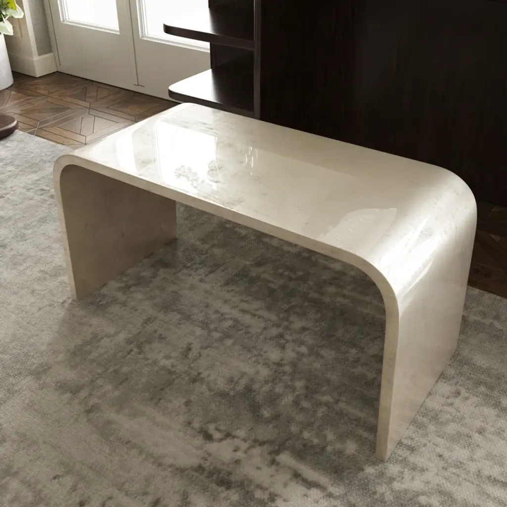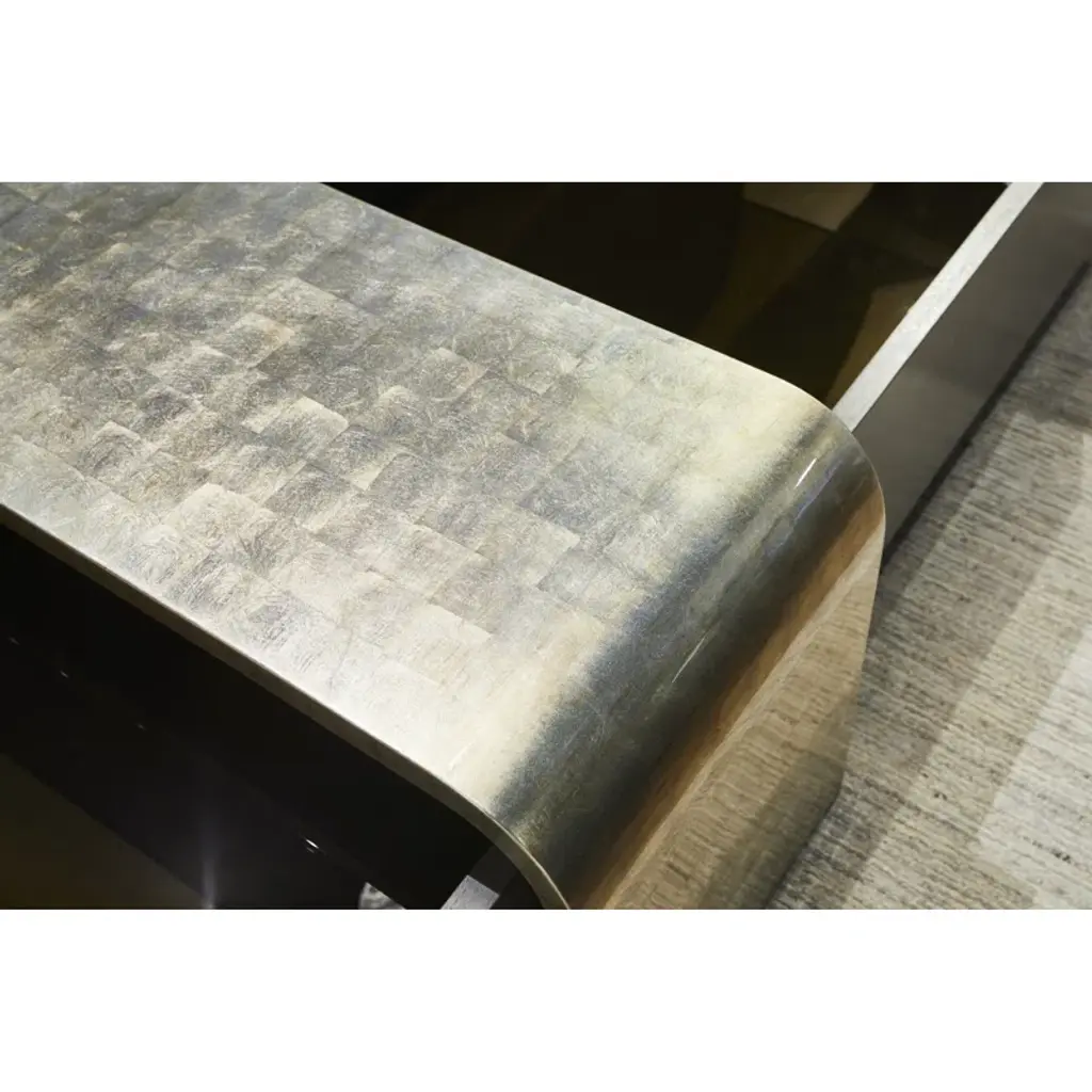Our luxuriant Continental Bench is finished on all sides – bottom included – in our Prosecco gold infused antique silver leaf finish. It works equally well astride our sixty-two inch Continental Cocktail Table, tucked into our Cannello Console Table, or at the foot of any of our beds.Designed and manufactured to meet both occasional table and chair load and impact standards, the Continental Bench has been tested to a static load capacity of 300 lbs.